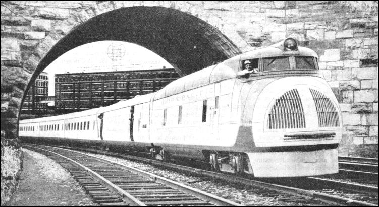 The Chicago, North Shore and Milwaukee makes use of street lines at either end of its journey, but intermediately, along the western shore of Lake Michigan, the trains do some extremely fast travelling. The "Chicago Special" runs the 74.1 miles between Harrison and Howard Street, Chicago, in 68 minutes, including three intermediate stops. From Kenosha this flyer must cover the ten miles to Racine in eight minutes, start-to-stop, and then clear Edison Court, 15 miles farther on, in 13 minutes more, and as the time-keeping record of this line is exceptionally good, it is obvious that these are not merely "paper" timings. Two other expresses cover the same 74.1 miles in 73 and 75 minutes, also stopping three times on the way, and the standard time for ordinary trains, with six stops, is only 80 minutes. Other interurban railways have start-to-stop bookings up to a mile a minute in speed, though not quite so spectacular in their schedules as the C.N.S. & M.R.R. In many other directions American speeds are gradually creeping up, and not a few journeys of over one thousand miles in length can now be completed at over fifty miles an hour throughout. The "St. Louisan" of the Pennsylvania, for example, takes the passenger over the 105.7 miles from New York to St. Louis in 21 hours at 50.1 miles an hour. The "South Western Limited" of the New York Central, with 105 miles farther to go, takes 22 hours 10 minutes, and averages 52.2 miles an hour. The latter uses the tracks of the Cleveland, Cincinnati and St. Louis R.R., or the "Big Four," as it is known, subsidiary, from Cleveland to St. Louis. From New York, Philadelphia, and Washington southward to the popular Florida coast resorts, also, similar speed is now maintained by the principal trains. West of St. Louis and Minneapolis lies the broad rampart of the Rocky Mountains, which reduces average speeds to and from the Pacific Coast ; though these have risen very considerably since the introduction of the Union Pacific Railroad's six-coach Diesel-driven train, which in 1934 made the fastest American Pacific to Atlantic run in history, from Los Angeles to New York in 56 hours 55 minutes. The "City of Portland" is now running twice weekly in either direction over the 2,272 miles between Chicago and Portland in 39-1/4 hours, so averaging all but 58 miles an hour. This compares with the 58 hours of the best ordinary steam-hauled express—the "Portland Rose." The New England lines have hitherto proceeded more sedately in the matter of speed, but here also Diesel propulsion is making headway. The Diesel-operated "Comet" of the New York, New Haven and Hartford makes the 43.3 miles run between Boston and Providence five times daily in 44 minutes (it took from 55 to 75 minutes before), and the similar "Flying Yankee" of the Boston and Maine covers the 111.3 miles between Boston and Portland in 110 minutes. Years ago, between the Canadian National and the Canadian Pacific Railways rivalry arose as to which should obtain the passenger traffic between the cities of Montreal and Toronto. The C.N.R. came down to a six-hours run over its 334-miles route, and this average overall speed of 55.7 miles per hour, with four intermediate stops, required the "International Limited" to make several point-to-point runs at over a mile a minute. Then the Canadian Pacific speeded up to 6-1/2 hours, over a distance six miles longer than that of the C.N.R.. and two-thirds of it single track. The result was that, over its double-track section, the C.P.R. booked its two principal expresses at speeds until then unknown in North America. From Smith's Falls to Montreal West is a distance of 124 miles, and this was scheduled to be covered in 109 minutes westbound and 108 minutes eastbound. Enough has been written, not only to show that the Americans are no strangers to high railway speeds, but also that, if American acceleration proceeds in the future as rapidly as it has done during the past year or so, the Americans will presently have few rivals in the speed of their crack trains, unless there are rapid developments elsewhere.