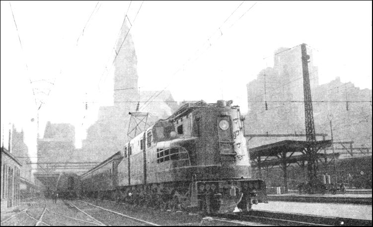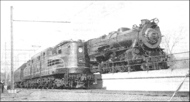 The Pennsylvania Railroad has the advantage in distance with a route 902-1/2 miles in length. But it leads through the heart of the Allegheny Mountains, and at Gallitzin, twelve miles west of Altoona, passes over a summit no less than 2,194 ft. above sea-level—equal to Shap and Beattock of the British L.M.S. main line added together, and still with nearly two hundred feet to spare. This peak altitude is approached by many miles of difficult grades. From the east the line climbs 965 ft. in 11.8 miles, at their steepest inclined at 1 in 53,while on the west side the line falls 1,004 ft. in 25.6 miles to Johnstown. Then there is considerable curvature of the line—including the famous Horseshoe Curve—which forbids anything in the way of high speed over the 433 miles between Harrisburg and Crestline. All the speeding must therefore be done at the two ends of the route, between New York, Philadelphia, and Harrisburg ; and between Crestline, Fort Wayne, and Chicago. The New York Central, however, has for its slogan "Water Level Route—you can sleep," to indicate, presumably, that the speed is maintained at an even level, and that there is no toilsome climbing of heavy gradients during the night hours. This is because the N.Y.C. goes northwards from New York up the left bank of the broad Hudson River as far as Albany, there making the right-angled bend which takes it westwards towards Chicago. This is a more circuitous course, measuring 958.7 miles in all, but the level character permits high speed to be sustained over most of the journey, except through the great cities of Buffalo and Cleveland, and, for reasons previously mentioned, through Syracuse. For many years the two crack competing expresses between New York and Chicago have been the "Twentieth Century Limited" of the New York Central, and the "Broadway Limited" of the Pennsylvania, composed exclusively of luxurious Pullman cars. For the special amenities of these flyers, in addition to the fare and Pullman supplement, a "service charge" is made, which in 1935 was reduced from ten to seven and a half dollars. Twenty hours was for many years the running time of the "Broadway" and the "Century," except during a brief period when a schedule of eighteen hours was tried. But it proved too exacting for the engines of the day, and after a disastrous accident to one of the trains it was abandoned. In 1932, however, the eighteen-hours schedule reappeared. In 1933 fifteen minutes were cut from it ; and in 1935 the bold step was taken of accelerating both the "Twentieth Century Limited" and the "Broadway Limited" to a seventeen-hours run. This means an overall speed, including every stop, of 56.4 miles per hour by the New York Central route, and of 53 miles per hour by the Pennsylvania, for a journey of nearly a thousand miles. For reasons already given much higher speeds must prevail over certain sections of each route. Between New York and Paoli, on the farther side of Philadelphia (106.3 miles), the traction is now electric ; and powerful streamlined electric locomotives take the "Broadway Limited" over the 75.7 miles between Newark, just outside New York, and Philadelphia North in 75 minutes. But steam beats electricity on the "Broadway's" daily journey. For it is booked on the eastbound run to cover the 140-9 miles from Englewood, a suburb of Chicago, to Fort Wayne in 131 minutes, at an average of 64.5 miles per hour from start-to-stop, and to continue for 131.7 miles to Crestline in 129 minutes. In the westbound direction, the running time from Fort Wayne to Englewood is only 130 minutes, and the start-to-stop average exactly 65 miles an hour. Between Fort Wayne and Chicago other and considerably faster runs are made daily over the Pennsylvania. Chief among them is a Chicago-Detroit express which has now been accelerated to cover the 64.2 miles from Plymouth to Fort Wayne in 51 minutes, at a start-to-stop average of 75.5 miles per hour. At the time of writing this is the fastest run in the world made by steam power, and the fastest American run, whether steam, electric, or Diesel. In the other direction, the corresponding flyer covers the 122.4 miles from Fort Wayne to Gary in 101 minutes, at 72.7 miles per hour.