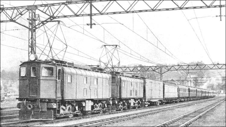 The saving in wage-bills was an important consideration in deciding upon the economics of electrification. The new service was worked by eighty-five sets of drivers and their mates, who replaced 300 drivers and firemen. This saving was augmented by a large reduction in overtime. The total mileage worked by ninety-five electric locomotives in 1927 was 6,383,000, making an average per locomotive of 67,000. The average cost of maintenance was 1-88 pence per mile. It was further estimated that the total capacity of the line had been increased by sixty per cent. There are two routes between Pietermaritzburg and Durban, of which the newer, with its 1 in 66 gradients, as compared with 1 in 33 to the north, has been chosen for electrification. The work of electrification between Cato Ridge and Durban has necessitated the doubling of the track, and the laying of the second track—on the standard South African 3 ft. 6 in. gauge—through ten tunnels, as well as the construction of long stretches of cutting and embankment through difficult country. The Glencoe-Pietermaritzburg section of the Natal Railway was opened to electrical operation in 1925. The Pietermaritzburg-Durban section was due to come into operation in 1936, and work is proceeding on the northern section of the Natal Railway from Glencoe to Volksrust.