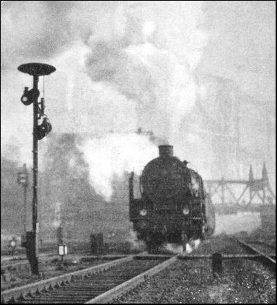 Furthermore, the system of repeating audibly in the engine cab the position of the signals, and the automatic application of brakes should a signal be passed at danger - such as is in use on the main lines of the English Great Western Railway - is now the customary practice all over France. Adverse signal indications are also marked on the speed indicator roll, but the driver is provided in the cab with a "vigilance button," with which he is able to mark the roll before the signal indication is made, so showing that throughout the journey he is unceasingly on the alert. Similar systems prevail in Germany and in other European countries. It cannot be claimed, of Course, that these precautions have brought all railway accidents to an end, and the French have certainly had their share, even during recent years. But within the last decade there have been years in which the French immunity from railway accidents has been just as high as in Great Britain - a remarkable and praiseworthy change from the conditions which prevailed immediately after the war. The thoroughness and efficiency of the Germans are in themselves an adequate safeguard against accident, and it is very seldom that we hear of any serious railway disaster on German territory. In considering the high speeds abroad that are now to be detailed, the reader should always keep in mind the maximum speed limitation to 75 m.p.h. that has just been mentioned. To maintain a high average speed in such conditions - as compared with the maxima of 80 to 90 miles an hour that are now common in the British Isles - a more uniform speed of travel is needed. This in its turn involves much higher uphill speeds and harder locomotive work. With the exception of one or two main routes - such as Berlin-Hamburg, where the signalling and the super-elevation of the track on curves have been altered to permit of higher speeds - the same limit of 75 m.p.h. for steam-hauled trains obtains in Germany and Belgium; but in most other countries the maximum permissible does not exceed 100 kilometres (62 miles) per hour. With the rail-cars, however, considerably higher speeds are permitted. These comparatively light vehicles are so efficiently braked that they can be brought to rest from the highest speeds in a very short distance. Thus between Berlin and Hamburg, Berlin and Hamm (Westphalia, on the Berlin-Cologne route), and Berlin and Leipzig, maximum speeds up to 160 kilometres (100 miles) an hour are permissible. In France the maximum for the Bugatti rail-cars of the P.L.M. and State Railways, running on the Paris-Lyons, Paris-Havre, and Paris-Deauville routes is generally fixed at 140 kilometres (87 miles) an hour. The fastest start-to-stop railway schedules in the world are now operated in Germany. For the first time in history bookings from start to stop at over eighty miles an hour have, from May 15, 1935, figured in railway timetables. Even the "Flying Hamburger" has been left behind by some of the point-to-point timings of the 1935 Berlin-Cologne and Berlin-Frankfurt rail-cars. From the Zoological Gardens Station, at Berlin, to Hanover, the Cologne car is booked over the 157.8 miles in 115 minutes, at a speed of 82.3 miles an hour, and in 1935, this is the world's fastest railway run; in the reverse direction 121 minutes are allowed for the same distance. Similarly the Frankfurt car is allowed only 76 minutes for the 102.2 miles from Leipzig into Berlin, which works out at 80.8 miles an hour, and 77 minutes in the opposite direction. In all, German rail-cars are responsible for making the twelve fastest railway runs in the world, all of them ranging in speed from 75 to 82.3 m.p.h. between starting and stopping.