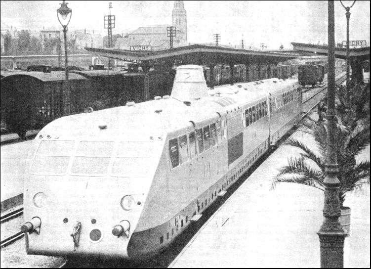 The idea underlying these services is to provide the German business man with travel between the principal German cities of so rapid a description that he is able to make lengthy journeys, transact his business in a distant city, and return home without having had to stay away overnight. The service is thus arranged so that the best use may be made of working hours, and an early start is inevitable. Thus the Cologne - Berlin rail-car leaves Cologne at seven in the morning, reaches Berlin (Zoo) ten minutes after midday, and Friedrichstrasse ten minutes later; starting back at 7.11 p.m., it reaches Cologne at eighteen minutes after midnight. The distance between Berlin (Zoo) and Cologne via Dusseldorf is 359 miles, and it is covered. with six intermediate stops, in 5 hours 10 minutes in one direction, and 4 hours 57 minutes in the other. Then there is the Frankfurt car, running over a much more difficult route, from the grading point of view, which starts at 6-40 a.m., reaches Berlin at 11.46 a.m., starts back at 6.24 p.m., and arrives at 11.29 p.m. It covers a total distance of 671 miles there and back, with two intermediate stops in one direction and three in the other, in an aggregate running time, stops excluded, of 598 minutes. The Munich car, which has to come through mountainous country between Nuremberg and Leipzig, sets out at 6.31 a.m., reaches Berlin at 1.20 p.m., starts back at 5.5 p.m., and arrives home six minutes before midnight; the total daily distance covered in this instance is just over 837 miles. The remaining two rail-cars are the famous "Flying Hamburger," and a new cross-country service from Cologne to Hamburg and back, which runs a distance of 280 miles in either direction, in 4 hours 18 minutes northbound and 4 hours 6 minutes southbound, with seven intermediate stops. Since the fastest previous time with steam was 5 hours 32 minutes over this route, the advantage conferred by the rail-car is obvious. In France, as already mentioned, maximum speeds over suitable stretches of line are limited, with the rail-cars, to 87 miles an hour, so that the overall speeds are not quite so high as those of Germany. The French railways specialise in Bugatti units for the high speed services, and the State Railways have been responsible for the most energetic developments in this direction. It is on the Paris-Havre main line that the fastest bookings are in force. Twice daily in either direction a Bugatti rail-car covers the 141.5 miles between Paris and Havre in two hours, at an average speed of 70.8 m.p.h., including a stop at Rouen. The quickest point-to-point time is from Havre to Rouen, a distance of 54.9 miles, which, though it includes - singularly enough - the longest and steepest climb on the route, is covered in 45 minutes, at a start-to-stop average of 73.2 miles an hour. During the height of the summer season the État also has its big first-class Bugattis running twice daily in the even two hours between Paris and the popular seaside resort of Trouville-Deauville, 136.2 miles away, maintaining an average of 68.1 miles an hour over a route with heavy gradients, and several severe slowings for curves. An innovation is a new cross-country rail-car service from Dieppe to Nantes and back, over a most intricate route, which nevertheless contrives to maintain a mile-a-minute average for over 300 miles, notwithstanding numerous intermediate stops and slowings. Connecting at Nantes with the "Côte d'Emeraude-Pyrénées" express, and at Dieppe with the steamers from and to Newhaven, this rail-car thus furnishes a new and fast connection between England and the south-west of France. The P.L.M. Company runs an express rail-car every day from Paris to Lyons and back, covering the 317.3 miles in 4 hours 50 minutes either way, inclusive of stops at Laroche and Dijon. The fastest run made by this car is from Dijon to Laroche, a distance of 99 miles, which is covered in 83 minutes, at an average of 71.6 miles an hour. During the height of the season a similar car is operated between Paris and Vichy, the famous spa, over the difficult Bourbonnais route.
