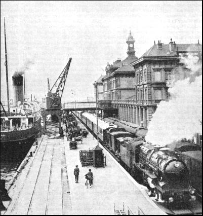 In the reverse direction the same train is allowed four minutes more, to allow for delay in connection with heavy engineering works in the last five miles from Joncherolles into Paris, which are likely to interfere with the running for some time to come. The "North Star" Pullman also makes the non-stop run between Paris and Brussels, but at a slightly lower speed, so that there are four daily non-stop journeys this course of 193.1 miles. The remarkable rebuilt "Pacific" locomotives recently transferred from the Paris-Orleans to the Nord Company are used on these services. The longest non-stop run on Nord metals, however, uses the same main line from Paris as far as Maubeuge, but from there continues north-eastwards through Charleroi to Namur and Liége, over the lines of the Nord-Belge company, which are Nord property. Four times daily, twice in either direction, the 226.7 miles between Paris and Liége are spanned without intermediate stoppage, and this is the longest non-stop run in any country other than Great Britain. The achievement is all the more remarkable in that water-troughs are not installed on this route, so that the tenders of the engines must carry sufficient water to suffice for nearly four hours' strenuous locomotive work. Two of the trains concerned make the run in 3 hours 50 minutes, involving an inclusive average of 59.1 miles an hour, but again slower running is required on the Belgian than on the French side of the frontier, so that the booked speed over the 147.7 miles between Paris and Jeumont is as high as 65 miles an hour. The other Paris-Liége non-stop runs are made by the "Nord Express" - one of the famous European luxury trains - which carries through sleeping-cars between Paris, Cologne, Berlin, Riga, and Warsaw and between Paris, Hamburg, and. Copenhagen. Despite its very substantial load it reaches Liége in 3 hours 56 minutes. Many other strikingly fast runs are made over this main line of the French Northern Railway. To St. Quentin, for example, although the distance from Paris is 95.1 miles, the time-tables show heavy express trains booked in 88, 90, 94, and 95 minutes. These timings demand first-class locomotive performances. Certain of the boat services between Calais, Boulogne, and Paris, also, are very fast. Pride of place for speed is taken by the evening service from Paris by the Boulogne-Folkestone route, which leaves Paris at 4-30 p.m., and is scheduled to cover the 140.5 miles to Etaples in 132 minutes, at an average of 63.9 miles an hour. The "Golden Arrow," carrying in its formation not only the Calais-Paris Pullmans, but also the "Blue Train" sleepers for the Riviera and the Simplon-Orient cars for Trieste and Istanbul, is allowed 193 minutes to run the 184.1 miles from Calais to Paris. All Paris-bound expresses from Calais are faced with the arduous climb out of Calais up to Caffiers, seven miles at 1 in 125, a dead slowing through Amiens, and finally the lengthy 1 in 200 ascent from Creil up to Survilliers.