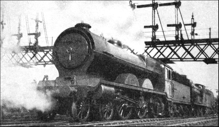 The London and North Eastern Railway enters Scotland by two gateways, Carlisle in the west and Berwick in the east. Several of its local crosscountry lines also cross the Border. Indeed, the L.N.E.R. has the beautiful Border country more or less to itself. On the English side there is the Newcastle and Carlisle line; on the Scottish side the picturesque Waverley route passes through Hawick, St. Boswells, Melrose and Galashiels on its way from Carlisle to Edinburgh. In the pre-grouping days the Midland Railway and the North British operated, by means of the Waverley route, a halfhearted competitive service to Edinburgh against the West Coast companies. The journey took longer and was more difficult, but not a few people preferred it because of the intensely interesting and romantic country through which the trains passed. The L.N.E.R. main line from Berwick to Edinburgh, Dundee, and Aberdeen, is, of course, simply a link in the "Great North Road of Steel," and, as such, is already too well known for further comment to be necessary. It is worth pointing out, however, that the company has the whole of the industrially rich county of Fife to itself, a monopoly previously enjoyed by the North British Railway. The L.N.E.R. has changed and greatly improved railway operation in Fife. To-day the traveller can enjoy the experience of crossing the Forth and Tay Bridges in trains as good as any in the country, although formerly rail transport in this part did not have a high reputation. For all its industrialism, too, Fife has many beautiful parts which are little known to the ordinary tourist. Far back in the last century the North British amalgamated with the Edinburgh and Glasgow Railway, and it was this company which built the present main line of the L.N.E.R. from the Scottish capital to the Scottish commercial metropolis. The route is flat and makes for easy running all the way from Edinburgh to Cowlairs, on the northern fringe of Glasgow. Thence it drops into the city by means of one of the steepest inclines on any British main line. For years—right into the present century—all trains leaving the Queen Street terminus via Cowlairs were assisted up the incline, engine and all, by means of an endless rope worked by a stationary engine at the top of the hill. On the front of the locomotive was an inverted coupling hook. This was attached, by means of a "messenger" rope, to the main endless wire rope. When the signal was given for the train to start, an electric bell was rung in the stationary engine house up at Cowlairs, so that the locomotive and the endless rope started pulling simultaneously. At the top of the hill, when the gradient became easier, the locomotive, still straining hard, naturally gained on the rope, with the result that the "messenger" rope dropped off. This obviated the need of stopping and uncoupling it. At the same time the special brake vans which were employed on the incline were slipped from the back of the train. Incoming trains had their locomotives detached at Cowlairs. A number of the special brake vans were then attached, a shunting engine gave the carriages a push, and the whole cavalcade tobogganed solemnly down to Queen Street. Nowadays heavy trains are banked up the incline by powerful tank engines provided with special slip couplings, so that they can drop off from the rear of the moving train as it passes through Cowlairs Station.
