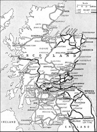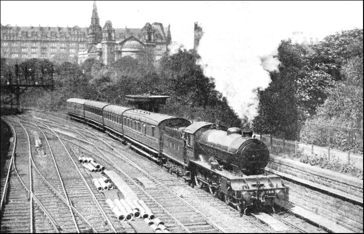 To return to the main line railways, we must not omit the West Highland line of the L.N.E.R. This line runs northwest, along the right bank of the Clyde, then up past Loch Lomond, across the L.M.S. at Crianlarich, and then away over the wild country of Rannoch Moor to Fort William. This is one of the most beautiful railway journeys in the British Isles. From Fort William a more recent extension runs through splendid country to the Inverness-shire port of Mallaig, the farthest outpost of the L.N.E.R., and a port of call for the steamers serving Skye and the outer Hebrides. The West Highland line operates but two passenger trains a day, except during the holiday season, when an extra tourist train appears. It is an important link in Scotland's communications for all that, since over its metals there is an unceasing passage of fish trains from Mallaig. Mallaig exports fish even to North America. Scottish towns are usually better served than their English sisters in the matter of railway stations. The most important stations in London are not always exactly central, Waterloo lurks in Lambeth, Euston hides behind Bloomsbury, and Paddington is remote indeed. But the two largest stations in Glasgow, Central and St. Enoch, both belonging to the L.M.S., are right in the middle of the city. So, too, is the L.N.E.R. terminus at Queen Street. Other Glasgow termini are Buchanan Street (L.M.S.), which is less distinguished in appointments and position, and, on the L.N.E.R., Bridgeton Cross., and Hyndland. The two latter serve the trains passing through Queen Street Low Level. They are notable more for the operating convenience they afford than for the number of passengers using them, Queen Street and the through station of Charing Cross taking the lion's share of the passenger traffic. Edinburgh possesses the best placed and third largest station in Great Britain This is the famous Waverley Station of the L.N.E.R., situated under the North Bridge in the ravine dividing the Old Town from the New Town. The station contains two terminals, end on to one another, with the station offices between, and with through lines on either side. It covers eighteen acres, and contains nineteen platforms, of which the longest has an overall length of 1, 680 feet. Over 600 trains use it daily. Adjoining the station is the North British Hotel, built by the old company whose name it bears The line enters Waverley from the east, passing under Calton Hill. Westwards it runs through the great ravine below the castle, and passes through a tunnel under the hillock called The Mound. The Mound is now eminently respectable, and the National Gallery stands on it, but once upon a time it was the city's garbage heap! The Edinburgh terminus of the L.M.S. is the old Caledonian station at Princes Street. In size and layout it cannot be compared with Waverley, but it is a convenient and well-planned station, with an excellent hotel, and lies in a triangle between Rutland Street and the Lothian Road. Princes Street itself runs off the apex of the triangle. A proposal has been made to replace the two principal stations in Edinburgh by a vast underground Union Station, accommodating buses as well as trains and situated in the middle of the New Town. It is unlikely, however, that this will ever be carried out, as such a station would be badly placed where the Old Town was concerned, and would cost far more than it was worth.