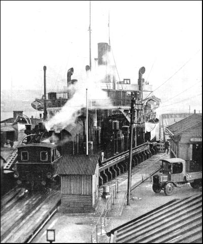 THE chief advantage of a train ferry lies in the fact that it saves any transference of goods. Wagons can be run on to it at one port and off it at the other, so working through from start to finish. Where fragile goods are concerned all risks of breakage by handling at the ports are avoided. Perishable goods also derive considerable benefit from a train ferry. Greater speed in transit has enabled more business to be done between Continental countries. Although it is becoming an increasingly vital factor in modern commerce, the train ferry is not a new idea. Long before the Forth Bridge had been built railway wagons were carried across the Firth of Forth from Granton pier at Leith to Burntisland, on the Fife coast, to avoid transhipment of their loads. The same thing happened south of Dundee, where the Firth of Tay was spanned by a ferry from Tayport to Broughty, until the Tay Bridge came into being. The train ferry system is seen at its best in the Baltic. Denmark consists, in the main, of Jutland, a peninsula physically joined by Schleswig-Holstein to the mainland of Europe ; the large island of Zealand on which the capital, Copenhagen, is situated ; and, between the two, the island of Funen. Between Jutland and Funen there lies the Little Belt, and between Funen and Zealand the Great Belt. But the railways in Zealand are linked with those in Jutland by two train ferries, which make through rail communication possible between the port of Esbjerg and other Jutland towns and Copenhagen. A journey from England to Copenhagen by the mail route across the North Sea from Harwich to Esbjerg necessitates a trip on a train ferry. At Esbjerg the traveller enters a through sleeping-car train for Copenhagen, and after a run of fifty-five miles across Jutland, Fredericia is reached. From here the two-miles crossing of the Little Belt is made. By smart working the train is run on to the ferry steamer in fifteen or twenty minutes ; the crossing itself takes fifteen to twenty minutes, and another fifteen minutes is needed at Strib to run the trains off on to land again and re-marshal. Next comes a run of fifty-two miles across Funen, which brings the train to Nyborg, at the west side of the Great Belt, where the same procedure must be repeated. But the Great Belt is sixteen miles wide, so that the train-ferry requires from seventy-five to eighty minutes for the crossing; and with the same time as before for the transfer from rail to ship and from ship to rail at the ports ; the total working out at not less than an hour and three-quarters. The two water crossings between them, therefore, consume about two and a half hours of the journey, though their combined length is only eighteen miles. Finally, a run of sixty-eight and a half miles takes the train from Korsoer, on the east side of the Great Belt, into Copenhagen. So efficiently are the trains run on and off the ferries that many travellers are unaware that they have made anything other than an ordinary railway journey.