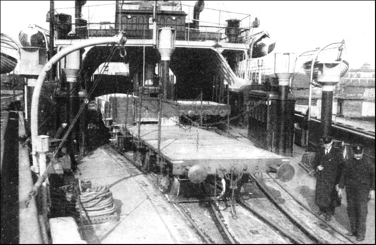During the war it became evident that, if some method could be devised of running munitions and guns across the English Channel without having to load them on and off ships at the Channel ports, a great deal of time and labour would be saved. The simplest solution was a train ferry ; and this led to the establishment of an entirely new port, on an inlet of the Kent coast between Ramsgate and Sandwich, called Richborough. Here a train-ferry terminal was constructed, with a corresponding terminal on the French side at Dunkirk, and through all the later stages of the war both ports were kept busy. Another similar train-ferry service was run between Southampton and Havre. After the war these services, having fulfilled their valuable function, ceased to operate. But it was felt that the principle thus established ought to be perpetuated, and so a company was formed to take over the ferry-steamers which had operated during the war between England and France. After a good deal of thought and planning, Harwich was decided on as the terminal on this side of the water, and Zeebrugge, in Belgium, as the Continental port. The company began its services in 1924, and took the name of "Great Eastern Train Ferries, Ltd.," owing to the lengthy association of the late Great Eastern Railway and its Continental steamer services with Harwich and the adjacent port at Parkeston Quay. The train ferry service is now worked by the London and North Eastern Railway. Special wagons have been built for the ferry service. They are easily recognizable, when running on this side of the water, by their inscriptions, in various Continental languages. Rather longer than the average covered wagon in this country, and painted white, they form a prominent object in any freight train in which they may be marshalled. Each of the ferry-steamers on the service is provided with four tracks, and can accommodate a total of fifty-four of these wagons. Notwithstanding the North Sea gales, not a single one of the nightly trips of the Harwich-Zeebrugge service has been missed, nor has any casualty occurred to a wagon during the crossing.