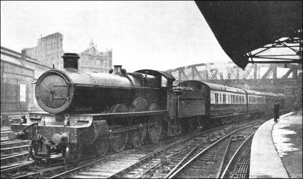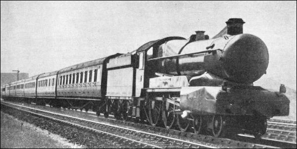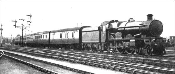 So near was this to the "seventy" line that the temptation to institute the first seventy-miles-an-hour booking on record became too strong to resist. In the summer of 1932, therefore, the schedule from Swindon to Paddington of the "Cheltenham Flyer" came down to 65 minutes, and the average start-to-stop speed rose to its present figure of 71.4 miles per hour. At the same time, the Cheltenham-London time was reduced to 2 hours 20 minutes, setting up a new standard of speed travel from this popular spa to London, and the arrival time in London, which had fluctuated between 4-55 and 5 p.m., became finally fixed at the latter hour. The later five minutes is an advantage, for it enables the "Cheltenham Flyer" to keep clear of the "Cornish Riviera Limited," due at 4-40 p.m., if the latter is running a little behind time. The engine of the "Cheltenham Flyer" works through from Gloucester, though it is attached to Old Oak Common Shed, and so is manned by a London crew. It has gone down from Paddington to Gloucester on the 10.45 a.m. train, and the Swindon London flight thus comes at the end of a round trip of 228 miles. But the down journey, with numerous stops, is no great tax on locomotive power. Some humour was once aroused along the line when the engine had been prepared at Old Oak for one of the exceptionally fast demonstration runs that have been made by the "Flyer" from time to time, and left Paddington on the leisurely 10-45 a.m. down, bearing on the front of the smoke-box the announcement: "World's Fastest Train." Almost invariably the engine employed is of the four-cylinder 4-6-0 "Castle" class. It may be wondered why a "King" is not found on this train; but, for sustained high speed with a moderate load, a "Castle" is undoubtedly the ideal engine. The "Kings" have been designed for the heavy trains and steep gradients of the West of England and Birmingham main lines, where their higher tractive power is developed to better advantage. No engine is exclusively allotted to the "Cheltenham Flyer" run, but a considerable variety of "Castles" and of engine-crews find their way on to this train, and competition is at times keen as to who can make the best speeds.