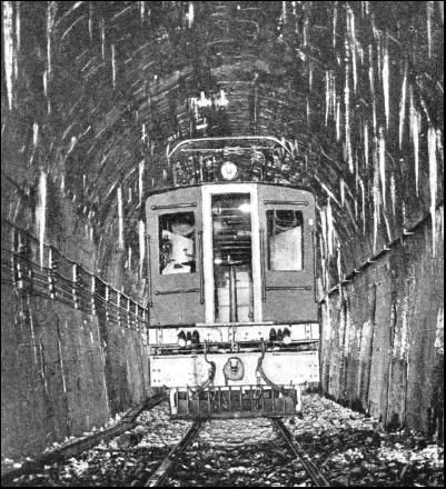 Meanwhile work had been proceeding much farther to the south. A railway was opened in February, 1867, from Invercargill to Bluff—New Zealand's most southerly port—thus antedating the completion of the line from Christchurch to Lyttelton by a mere nine months. Then, in 1872, construction began from the, city of Dunedin, and the first seven miles of railway northwards towards Christchurch were opened in December of that year. This was a small line connecting Dunedin with Port Chalmers, on which double-ended "Fairlie" locomotives were used. But the bulk of the constructional work on the main line was carried out between the years 1875 and 1878. September, 1878, saw the completion of the last link between Christchurch and Dunedin—the nine miles from Palmerston to Waikouaiti, and the final link south of Dunedin—the twenty-one miles from Balclutha to Clinton—followed in January, 1879. Thus the whole of the South Island's main line, 392 miles in length, from Lyttelton through Christchurch, Palmerston, Dunedin, and Invercargill to the Bluff, became an accomplished fact. Of other river crossings, the biggest, after the Rakaia Viaduct, is the bridge across the Waitaki River, near Oamaru, 3,733 ft. long. The two arms of the Rangitaka River also required some extensive bridging, with one viaduct 1,978 ft. and the other 1,016 ft. long. For the first 130 miles out of Christchurch the line is level. One by one the waters of the great rivers are crossed— the Rakaia, Ashburton, Rangitaka rivers in particular—rushing down their wide beds from the glaciers which cover the Southern Alps, fifty or sixty miles to the west. The whole of the great Canterbury Plain was formed, in the remote ages of the past, by erosion from the mountains, the sandstone and slate formation of which made them subject to denudation on a vast scale. These deposits now form a most important part of New Zealand's natural wealth, for here is the finest granary and sheep-farming district in the Dominion. Beyond the broad Rangitaka comes the South Canterbury country, which extends for sixty miles southwards to the Waitaki River, separating it from Otago Province. The plain gives place to hilly country coming down to the sea, and from Timaru onwards the railway hugs the coast as far as Dunedin, whence a sinuous course, farther inland, is followed to Invercargill and Bluff. During its progress, the railway has thrown off many branches inland, up the rivers towards the mountains. It was one of these, in the valley of the Waimakariki River from Rolleston Junction, that was finally carried into the heart of the mountains at Arthur's Pass, to pierce the ridge and link up with the lines on the western seaboard. The Otira Tunnel itself was. of course, the most costly and difficult part of the undertaking. In length it is five and a quarter miles, and it is of horseshoe shape in its cross-section, 17 ft. high and 15 ft. wide. It was driven from either end, first with a bottom heading, and then with a second heading at a higher level, to assist in the removal of the spoil. Stiff climbing from Rolleston Junction is needed to reach the east portal of the tunnel, which is 2,435 ft. above sea-level. Through the tunnel the line falls steadily on a gradient of 1 in 33, emerging at Otira, 1,585 ft. above the sea. The tunnel is dead straight, and it is possible from one end to see the pinpoint of light which marks the other end.