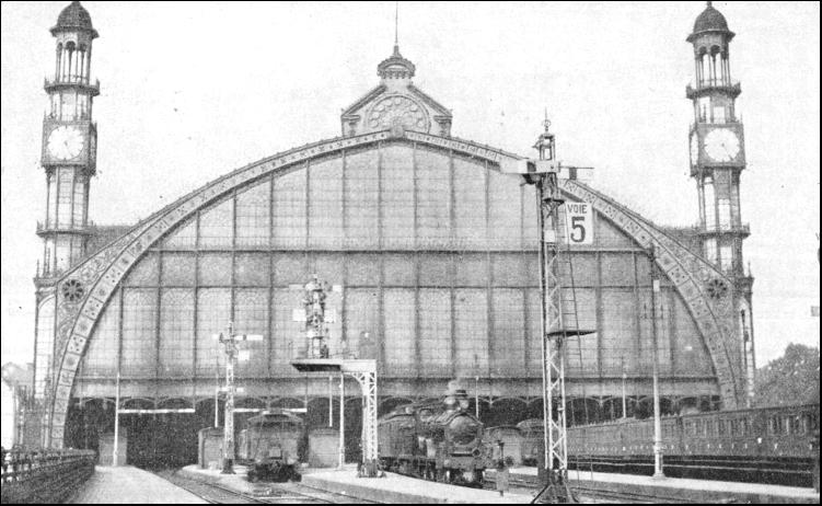 Until recently electric railway development in Belgium was more or less an unknown quantity. In 1929, however, the nine-miles-long suburban line from Brussels to Terveuren was selected for experiment, electric traction being inaugurated in 1931. This was a small independent railway. The Belgian National Railways' first venture did not come to fruition until April, 1935, when the twenty-seven and a half miles line from Brussels to Antwerp was electrified. Direct current at a pressure of 3,000 volts is used, with overhead conductors, similar to those of the 1,500 volt electrification of the neighbouring Netherlands Railways between Dordrecht, Rotterdam, and Amsterdam. The Belgian National has also adopted the multiple unit system of working each train unit, consisting of two motor coaches, with pantograph current collectors mounted on the roofs, and two trailer coaches coupled between them. Central automatic couplers are used, as on the American railways, side buffers being dispensed with. As in Germany, the railway stations of Belgium, where the bigger towns are concerned, attain a very high standard of architecture and arrangement generally. The Central Station at Antwerp is superb, and has one of the most striking exteriors of any station in the world. The architecture is of the elaborately ornamented Renaissance style ; the roof has a lofty cupola containing four half-rose windows. St. Pierre Station at Ghent is also a striking piece of architecture. An Arabesque style has crept in here; but views differ on the beauty, or otherwise, of the experiment. The battlemented walls add a medieval touch, which is enhanced by the conspicuous clock-tower.