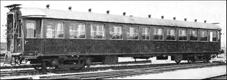 In 1935 a fine 4-6-2 appeared, together with fourteen sister locomotives. These are four-cylinder engines, and each weighs, with tender, in working order, approximately 200 tons. This is very heavy for a European "Pacific." They are handsome engines, too, which is more than can be said for their five-years-old forerunners. The boiler-sheathing is flush-topped, hiding the dome and top-feed arrangements, while the front-end screens and the smoke-box are arranged in exactly the same way as that invented and adopted by Mr. H. N. Gresley for his "Cock o' the North" on the L.N.E.R. The coupled wheels have a diameter of 6 ft. 5-1/4 in., which is greater than that found on most Continental locomotives. Under the Belgian State Railways, after the war, locomotives were painted in a rather ugly shade of light reddish brown, which seemed speedily to deteriorate, first to a nondescript pink and then to no colour at all. When, however, the Belgian National Railways Company came into existence, the standard colour-scheme was changed to a deep bottle-green, with scarlet buffer-beams. As certain parts of many engines, including the chimney caps, are sheathed in polished brass, their appearance is very smart. In the matter of passenger rolling-stock, until recently the Belgian standard was rather low, except for international trains. Even in these there were sometimes included Belgian coaches which compared unfavourably with the German and Polish carriages marshalled in the same train. On purely inland services there were hundreds of six-wheeled third-class carriages, with windows in the doors only. The ex-German "reparations" coaches were rather more up-to-date. A decisive step has now been taken, and fine all-steel corridor coaches are quickly replacing the old stock on both internal and international services. Before the war the only consistently good rolling-stock was represented by the Pullman-type carriages running in the special Brussels-Antwerp service. To-day it may be safely prophesied that, unless anything unforeseen occurs, the passenger rolling-stock of the Belgian National Railways Company will in a few years compare favourably with that of any other country on the European continent. In this connexion it should be remembered that Belgium was a pioneer in the use of the corridor coach. The first-class carriages of 1836, introduced for the extension of the Brussels-Malines line to Antwerp, had central gangways connecting the compartments, which held eight passengers each.