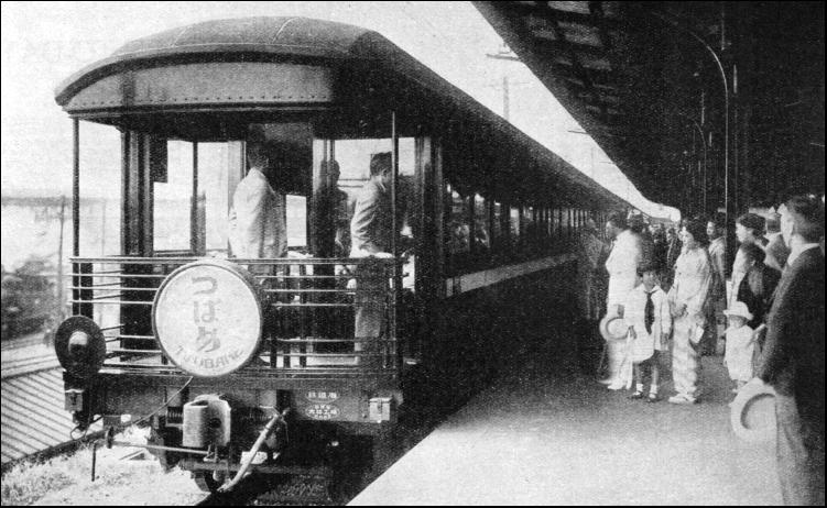 Most of the modern locomotives in Japan are a combination of British and American designs. The sand boxes are on top of the boiler. Another prominent feature of many of the locomotives is the large tenders which they draw. This is to enable the long-distance trains—such as those that travel on the Tokyo-Nagoya route—to complete the journey without stopping to pick up water. Another interesting feature of Japanese locomotives is that some trains have double smoke-stacks, so that by getting rid of exhaust steam more quickly they can attain greater power when travelling at high speeds. We have seen on this page the attention given to every detail to ensure that all travellers shall be comfortable. The same attention is given to goods traffic, which, we know, provides the greater revenue. The increase of goods traffic in Japan made it necessary to have a more powerful type of locomotive, and an American firm was trusted with the task of building it. This firm took the established "consolidated" type of the 2-8-0 wheel arrangement, and gave it a wide, deep smoke-box, set behind the engine driving wheels. To provide the necessary support for the enlarged smoke-box, a trailing truck was introduced, and this modification gave a wheel arrangement of 2-8-2. This is merely one example of the manner in which the Japanese exploit their chief source of revenue on the railways, and many others could be quoted. Some of these are peculiar to Japan, which, as stated, has to contend with many unusual difficulties. A great part of the goods traffic is of an unusual character—live fish, chiefly carp, from Lake Biwa to the river Kuma on Kyushu Island. This transport has become of such importance that a number of specially-constructed fish-cars were designed for this purpose. When it was decided to build these special cars, the Japanese, in their usual methodical manner, built only one, and carried out experiments on it while it was in service. With the results of these experiments in view they built five more cars, each embodying improvements that had been suggested by the experience gained in service. Perishable goods, such as fish, butter, and meat arc carried in refrigerator cars, fitted with dry ice. This is ordinary ice kept at such a temperature that it has no moisture. It was believed that its use in refrigerating cars would go far to improving the existing method of the transport of perishable goods, and the State Railways decided to employ it for a trial in fifteen cars. These test cars were specially remodelled, and after repeated experiments it was found that the use of dry ice was not only a better safeguard against bacteria, but that it was also specially suited for this form of transport. In this and in other ways Japanese business houses are encouraged to send their goods by train. This encouragement is not merely an appeal by way of advertisement. The State Railways has made the business man feel that it is the best way to send his produce, and that it is to his own advantage to do so. These advantages are not limited to his own country. If he should want to send his goods to an exhibition abroad, the State Railways allows him a special reduction in rates for the transport of goods to be displayed. In 1933 many large firms in Japan took advantage of this offer to send their goods to two of the largest trade fairs ever held, at Chicago and at Leipzig. A reduction of 40 per cent off the regular rates was allowed for goods carried over the State lines.