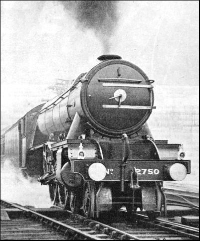 Although the Americans may have claimed to have beaten the Great Western Railway Swindon - Paddington record on this trip, they did not succeed in doing so on a start-to-stop basis, as their time for the 85 miles from Chicago to Milwaukee - 67 minutes 35 seconds - gives a start-to-stop speed of 75.5 miles an hour, as compared with the G.W.R.'s 81.68 miles an hour. But restrained running is necessary until the city limits of Chicago have been left behind, and it is quite possible that the average of 89.9 miles an hour maintained over the 68.7 miles between Mayfair, Illinois, and Lake Wisconsin is the fastest stretch of its length that has ever yet been accomplished by steam power. Last of all, there came the remarkable London and North Eastern Railway journeys of November 30, 1934, and March 5, 1935. These were deliberately arranged as the challenge of steam to Diesel propulsion which is being pressed on British railways, following on the successful running of the "Flying Hamburger" rail-car in Germany, as the best method of working high-speed services, but the L.N.E.R. claim that they can do equally well with steam, generated from Britain’s own native fuel - coal - and set out to prove it. For the Leeds run, on November 30, 1934, a four-coach train was made up, weighing 145 tons, with "Flying Scotsman" - an eleven-year-old "Pacific" locomotive - at the head. A provisional schedule of 2¾ hours had been laid down for the 185.8 miles, but this was found easily capable of improvement. The run was made in thirteen minutes less - 151 minutes 56 seconds, to be precise. For the return journey two more coaches were added, making a total of 208 tons behind the engine tender, but once again the time was improved on, King’s Cross being reached in 157 minutes 17 seconds. Of the round journey, perhaps the most amazing feature was that the engine climbed the whole of the last ten miles to Stoke Summit, partly at 1 in 200 and partly at 1 in 178, at an average of 82.5 miles an hour, and went over the top at 81 miles an hour. Down the same bank, in the reverse direction, a maximum of 100 miles an hour was reached. Of the return journey, all made by the one locomotive, no fewer than 250 miles in all were covered at the high average speed of 80 miles an hour. But these figures were eclipsed by those of March 5, 1935. King’s Cross - Newcastle was the course on the latter occasion, and No. 2750 "Papyrus" - a seven-year-old "Pacific" of the high-pressure series - was the engine. The test was devised to show the practicability of working a train of six coaches, weighing 217 tons, over the 268.3 miles between King’s Cross and Newcastle in four hours each way. Notwithstanding the fact that again the same engine was used in both directions, and that 11½ minutes were lost in consequence of some wagons being off the road at Arksey, the task was performed with triumphant case, and with eleven more minutes to spare. Sheaves of records were amassed on this amazing day. Allowing for the Arksey delays "Papyrus" did the round trip of 536.6 miles at an hour average of 70.4 miles an hour, and covered 500 miles at 72.7 miles an hour; 300 miles exactly out of the total distance covered were reeled off at 80 miles an hour and the climax, in the descent from Stoke Summit to Peterborough, was the feat of covering 12.3 miles at 100.6 miles an hour average, with a fully authenticated maximum of 108 miles an hour. Every one of these achievements. so far as is known, was a world’s record for steam traction. So far from this trip having been merely a speed "stunt," the lessons learned were of such value that it was decided to institute in October 1935, a daily four-hour service between King’s Cross and Newcastle, with specially built trains, each seating 194 passengers, and equipped within restaurant cars, fully streamlined throughout. From such records as these, it is clear that steam has still plenty of fight left. This multiplication of records suggests that even the wonderful runs described here may be improved upon in the near future. Both in this country and abroad considerable attention has been given to streamlining. As a footnote, L.N.E.R. class A4, "Mallard" attained a speed of 126 miles an hour, on the descent from Stoke Summit in 1938, a world record for a steam locomotive, which is held to this day.........