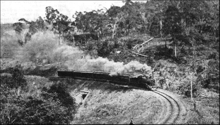 A popular train operating within the borders of the State is the "South Coast Daylight Express," which runs between Sydney and Nowra, ninety-five miles, in just over three hours. It is made up of six coaches, painted green and cream, with the name of the express in gold letters on the leading car. The coaches are of the centre-corridor type. with seats for seventy-two first- and 140 second-class passengers. The locomotives are of the "C 35" class, with 22½ by 26 in. cylinders, 5 ft. 9 in. driving-wheels, and 180 lb. boiler pressure; they weigh 124 tons, with tender, in running trim. Another famous train, the "Caves Express" is normally made up of five light cars, the total weight being just over a hundred tons. The speed for the first fourteen miles through the suburbs of Sydney, with 1 in 90 grades, averages forty-two miles an hour. The next section of twenty miles is run in twenty-two minutes over give-and-take 1 in 80 grades, the average speed for the thirty-four miles being forty-eight and a half miles an hour. After two level miles the "Caves Express" covers ten and a half miles continuously at 1 in 60, which is taken at thirty-six miles an hour. The grades then stiffen, half the line for the next twenty miles being 1 in 33, the total lift being 2,280 ft. The last ten miles reduce the speed of the express to twenty-four miles an hour. She makes her first stop fifty-eight miles front Sydney at an elevation of 2,220 ft. The remaining portions of the trip average twenty-two to twenty-four miles an hour between stations over gradients again as 1 in 33. New South Wales passenger traffic is divided into suburban and country sections, the former being that within thirty-four miles of the cities of Sydney and Newcastle. Most of the country trains leave Sydney in the evening to fit in with postal needs and, therefore, do not carry dining cars. They arrive at the termini in the country, several hundred miles from Sydney, with the mails and passengers, in the morning. In the four hours between 6.45 and 10.45 p.m. about fifteen expresses and mail trains leave Sydney Central Station. In the morning about a dozen arrive between, approximately, five and seven o’clock Another five pull into Sydney before noon. The State has a safety record in which it takes pride. In one period of twenty years there were fourteen years during which there were no fatal accidents on the railways. In the remaining six years fifty-two passengers were killed, but by causes beyond the control of the Railways Department - a noteworthy record for a railway operating some six thousand miles of lines through all sorts of country. In 1935 the State owned 6,164 miles of track, 1,287 locomotives, 2,673 carriages, 37 motor passenger vehicles, 22,247 freight wagons and 1,458 service wagons. Among the largest locomotives is the three-cylinder 4-8-2 "Mountain" type of the "D 57" class.