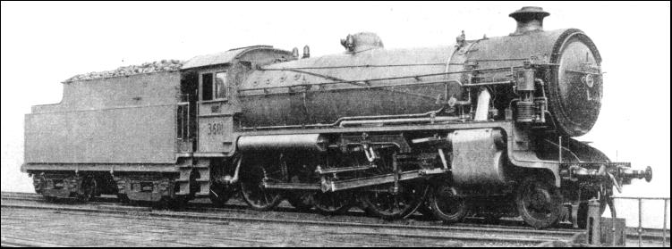 For the Melbourne-Sydney Limited Expresses three-cylinder locomotives of the "Pacific" type are used. The time allowed for the 191 miles from Melbourne to Albury, including one intermediate stop for refreshments, is four and a half hours. From eight to twelve cars are hauled by three-cylinder locomotives of the "S.300" 4-6-2 type. There is an all-steel dining-car, and the rear car is an observation car which carries the name of the express, illuminated at night, round the railing of the rear platform. The State Railway system comprises about 4,600 miles of 5 ft. 3 in. gauge track, over 173 miles of which are electrified. And there was, in 1935, 638 steam and twelve electric locomotives, 1,598 steam and 856 electric coaches, thirty-three electric trains, ninety-eight rail motor vehicles, 20,129 goods vehicles, and 794 service vehicles. The workshops are at Newport. Flinders Street Station, Melbourne, has at times been claimed, without complete justification, to have the heaviest passenger traffic in the world. It is certainly a busy spot, with its sixteen passenger platforms in constant use, especially on Melbourne Cup day. The race for the Melbourne Cup, at Flemington Race-course, is, perhaps, the principal sporting event in the Southern Hemisphere. There is a nursery in the station which in one year cared for nearly 9,000 children. Melbourne and Sydney are two of the most attractive cities in the world. To the visitor from the Old World they each convey a message of beauty and endeavour. Cleaner and, in many ways, more progressive than many European cities, which are rooted in the past, each represents a triumph of Anglo-Saxon organisation, especially when it is remembered that it is not long (rather more than a century ago with Melbourne) when the sites of both cities were merely unclaimed wilderness. The railways have, of course, played their part in the development of the two cities. Going westward into South Australia the traveller finds the sunlit city of Adelaide. For size, Adelaide cannot compare with her sisters, but she has a charm of her own. The railway station is one of the finest in the Commonwealth. The State operates about 1,450 miles of 5 ft. 3 in. gauge lines, and nearly 1,100 miles of 3 ft. 6 in. gauge. Figures for the broad gauge rolling-stock are 250 locomotives, 497 carriages, and 3,567 wagons; narrow gauge: 188 locomotives, 201 carriages and 5,628 wagons. The well-equipped locomotive workshops at Islington have turned out some very powerful locomotives. The standard gauge line, part of the Trans-Australian Railway, and the narrow gauge Central Australia Railway (Port Augusta to Alice Springs) are owned by the Commonwealth Government Railways. Alice Springs is the present railhead of the projected North-South Transcontinental Railway, which may one day link Adelaide with Darwin, the Australian settlement so well known to long-distance flyers. The principal train is the Adelaide-Melbourne Express (broad gauge). Until recent years Melbourne and Adelaide were the only two State capitals connected by lines of the same gauge. The express has stock belonging jointly to South Australia and to Victoria, with first and second-class compartments, and sleeping and day coaches. It is hauled by locomotives of the "Mountain" type, "500" class. "Mikado" type locomotives are used for goods traffic.