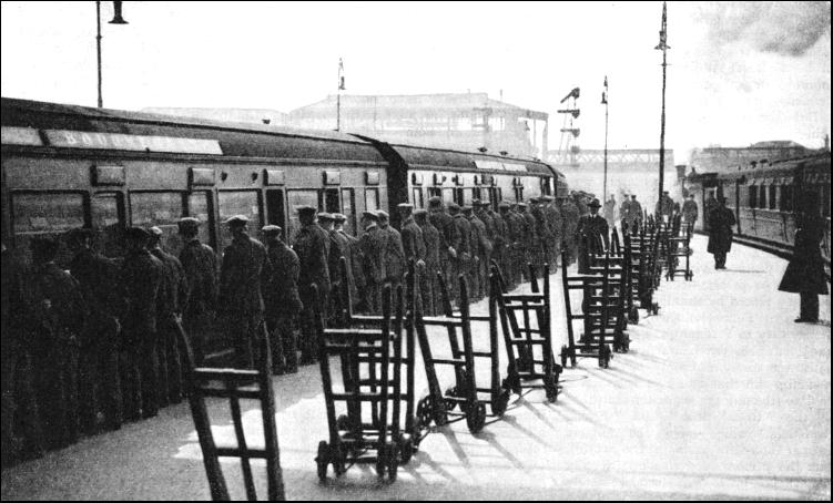 The size of Great Britain makes impossible continuous runs approaching the length of that of the Garrett-Palmer special, but so far as concerns the general working of theatre traffic, the British railways are fully up to date. The running of theatre specials in Great Britain is a branch of railway working of which little is known by the general public, largely because the traffic is worked either on Sundays or on Saturday nights, these being the only times at which touring companies can normally travel. Save for productions necessitating unusually elaborate scenery or "properties," it is not the regular practice for a theatre company to engage a special train; but special compartments are reserved. According to circumstances, one or more companies may be conveyed by the same train. A feature of the handling of this traffic is the considerable amount of cross-country travel that is often involved. Scenery is usually conveyed in large covered vans. Another highly specialised form of traffic is the handling of military trains. Even during peace time this often involves the conveyance of artillery and limbers in addition to troops, while in war time it would necessitate the conveyance of immense quantities of munitions, rations, and stores of all kinds. Moreover, since such traffic has to be worked in accordance with the military exigencies of the moment, it is apt to involve the running on a large scale of special trains at short notice. The magnitude of the task under modern conditions can be gauged by a few figures relating to two English railways - the South-Eastern and Chatham and the London and South Western during 1914-1918. The special "South Eastern" leave trains, run to and from Victoria Station between November 1914. and November 11, 1918, numbered 14,871, carrying a total of 6,530,482 officers and men. But this figure is far from indicating the real intensity of the leave traffic, since if allowance be made for the movements from and to the various training camps situated in South Eastern and Chatham territory, the aggregate number of journeys amounted to no fewer than 13,962,000. Between May 1, 1918, and the Armistice, Cannon Street Station was closed to public passenger traffic between 11 a.m. and 4 p.m. daily from Mondays to Fridays, and from 3 p.m. on Saturday to Sunday midnight. The purpose of this arrangement was to enable the terminus to be used as an auxiliary goods station. It was employed on alternate weeks by Great Northern and Midland trains, engines and trains crews from these "foreign" lines being changed there. During the period of emergency working, 5,803 goods trains, representing a total of about 175,000 wagons, were dealt with at Cannon Street. The South Eastern and Chatham was also called on from time to time to handle "extra special" military trains, which had to be available at any hour of the day or night, and which were run under what was known as the "Imperial A" code. The function of these trains was to convey highly placed personages, or even a single individual, who had to reach France in the shortest possible time. Both Dover and Folkestone were used as termini, and the sea journey was on occasion made by a special boat. The usual make-up of the "Imperial A" trains, which ran as non-stops to which everything else on the line had to give way, and could be ordered at half an hour's notice, consisted of a locomotive, a saloon, and a composite guard's brake and passenger vehicle. Two hundred and eighty-three were run in all. A typical run was made on August 14, 1914, when Field-Marshal Sir John French (later the first Earl of Ypres) was conveyed the 77½ miles from Victoria to Dover in eighty minutes.