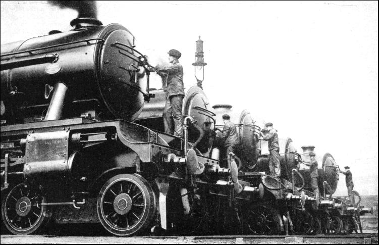 One of the most remarkable instances on record of mass passenger transportation occurred in connection with the Coronation of King George V. On June 30, 1911, a Coronation Fête was given at the Crystal Palace to a hundred thousand school children, and in those early days of motor traffic the railway was called on to take all the traffic. This was another occasion when the special trains were required to be worked without interference with normal traffic, and five railway companies co-operated in the provision of the service. These were the London and South Western, London, Brighton and South Coast, London and North Western, Great Western, and North London. The elaborate nature of the arrangements may be gauged from the fact that the special time-table issued by the Brighton Company for the use of its Crystal Palace Station staff, formed a booklet of over ninety pages, dealing with the working of forty-two special trains to and from twenty-one separate terminal points throughout the London area. The originating stations were Balham, Chelsea, Canonbury, Clapham Junction, Dalston, Hackney, Homerton, Kensington (Addison Road), London Bridge, New Cross, Paddington, Peckham Rye, Putney, Queen's Park, Streatham Hill, South Bermondsey, Tooting, Victoria, Wandsworth Common, West Brompton, and Westbourne Park. The London and South Western trains were worked by Brighton engines and guards, and London and North Western engines and train staff were used on the North London specials. Although the Great Western trains - from Paddington and Westbourne Park - were hauled by the company's own locomotives, it was necessary to carry pilotmen between Kensington and the Crystal Palace. The problem here was complicated by the necessity for compressing the traffic within a relatively short working day, so that the children should have as many hours as possible at the Palace, and yet arrive home early. The first train - from Putney - left at 9.35 a.m., and arrived at 10.30, and the last was booked to leave Balham at 2.14 p.m. and to reach its destination at 2.28. On the return journey, the departures were made between 4.35 and 8.15 p.m., the last train being booked in at Streatham Hill at 8.23 p.m. It was, of course, out of the question to stable all the empties in the neighbourhood of the Crystal Palace, and special arrangements had, therefore, to be made for the storage of the trains between trips at a number of either stations. These comprised Norwood Junction, Clapham Junction, New Cross, Streatham Hill, Kensington, and London Bridge. Only a few were dealt with at the Crystal Palace. In two instances the trains on their way back to the Palace accommodated ordinary passengers between London Bridge and Sydenham. This Coronation Fête traffic may be regarded as an unparalleled feat in railway transportation, and it is a tribute to the British railwayman to say that the performance was regarded as being all in the day's work. That may, in fact, be taken as the railwayman's motto. The organisation of a modern railway is extraordinarily flexible, and it must be, otherwise the "house of cards" would continually be in danger of disarrangement.