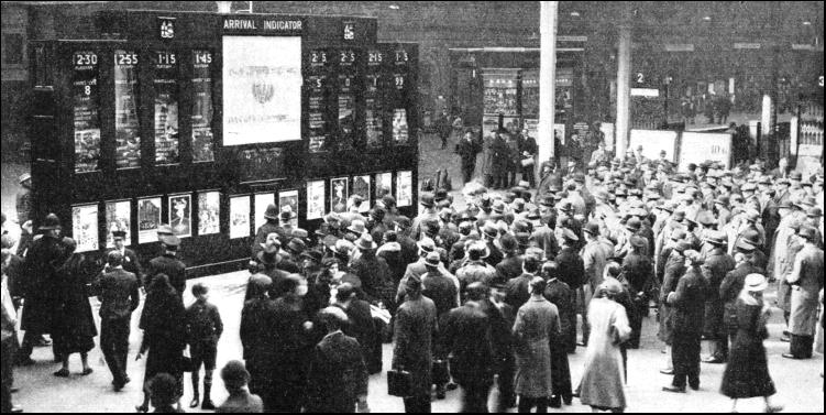 The Liverpool Overhead service deserves special mention. In 1905, a short spur line was built to permit through running between this railway and the Liverpool, Southport and Crossens electrified section of the then Lancashire and Yorkshire Railway, and a through service was worked until 1922, when it was withdrawn as the result of road competition. But the through service is revived once every year - on Grand National Day. Another sporting event responsible for an unusual volume of special traffic working is Doncaster Race Week in September, especially St. Leger Day. Traffic working is here complicated by the fact that while Aintree does not accommodate a heavy normal train service, Doncaster is a strategic point on the London and North Eastern, through which there passes the whole of its traffic between London and Scotland, as well as many local and cross-country trains linking up the old Great Northern main line with the Great Central, Great Eastern, and North Eastern sections. As at Aintree, much of the special race traffic, specially on the day of the St. Leger, consists of passengers who arrive and depart on the same day. The lay-out of Doncaster Station, which has a down island, and an up main platform, both supplemented by small bays, is not ideal for the purpose. Fortunately, extensive locomotive sidings are situated between the station and the locomotive shops, and these sidings are pressed into service as points of arrival and departure. The volume of special traffic is heavier from the north than from the south. On a recent St. Leger Day, thirty-two up specials, as against twenty down, arrived between 8 a.m. and 1.30 p.m. This was exclusive of the ordinary passenger service, which brought the total up to nearly double the number. During the race week Doncaster handles also a very heavy horse-box traffic, as horse sales are held on the occasion of the meeting, during which as many as seventy special horse-box trains, consisting in all of over a thousand horse-boxes, may be run. As with the Grand National, the special trains come from all parts of the country, and an elaborate system of engine notice boards and carriage labels is used to notify passengers of the stations served by each train. The locomotives and coaching stock exhibit similar variety to that to be met with on the day of the Grand National. The Football Association Cup Final is another annual sporting fixture attracting much long-distance special traffic. This comes to London from all Parts of the country. For the Cup Final of 1934 the London and North Eastern alone ran thirty-seven specials from the Midlands, the North of England and Scotland. Passengers from some of the Scottish stations made a journey of as much as 450 miles in either direction. The points of departure included Manchester, Hull, Leeds, Birmingham, Kirkcaldy, Dunfermline, Edinburgh, Falkirk, Seaham Harbour, Harrogate, Berwick-on-Tweed, Norwich, Yarmouth and Ipswich. The first arrival was shortly after 4 a.m. at King's Cross, and on the return journey trains left this terminus in a steady stream between 10 a.m. and 2 p.m. A special feature of the Cup Tie traffic is the exceptional demand for saloon coaches, as many as three hundred being required on the L.N.E.R. in 1934. Further, the bulk of the long-distance passengers do not travel direct to and from their objective, as at Aintree and Doncaster. Thus, passengers to King's Cross and Euston have to make their way thence to Wembley, which is served by the L.M.S., Metropolitan, and the L.N.E.R. A second and very intensive special service is thus required between London and Wembley. On the Great Central section of the London and North Eastern this is a non-stop run between Marylebone and the stadium station in twelve minutes.