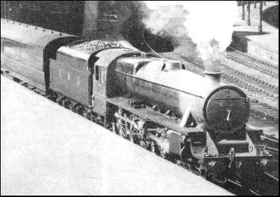 The L.N.E.R., on the other hand, has remained faithful to the 2-6-0, or "Mogul" wheel arrangement for mixed traffic service. The first of these engines, designed by Mr. H. N. Gresley, was introduced in Great Northern days and was the two-cylinder series now classified as "K.1" and "K.2." Then there emerged from Doncaster Works the first of the "K.3" type, distinguished by having three cylinders and boilers of no less than 6 ft. diameter. They were originally numbered 1000 to 1009, and have now become Nos. 4000 to 4009, since when many others have been built. These engines work all the express freight services between London and York. including some notable trains such as the night "Scottish Goods" from King's Cross goods station to Glasgow. Notwithstanding driving wheels of only 5 ft. 8 in. in diameter, these locomotives have been timed on passenger trains at maximum speeds as high as seventy-nine miles an hour. The Great Western "Moguls" have driving wheels of the same diameter, and the best speed effort with which they have been credited was made during the tests of the Bridge Stress Committee, when one of them, running light, is reputed to have touched eighty-seven miles an hour. But such speeds as these are obviously not the primary aim of a mixed traffic design, which is intended, as previously indicated, to be a "maid-of-all-work" suitable for many different descriptions of traffic. On the Southern Railway the "Moguls," by contrast, have been used almost exclusively, up till now, on passenger services, particularly between Victoria and Eastbourne and between Waterloo and Portsmouth. But the electrification of the former route, and the introduction, since the recent accelerations, of the powerful "Schools" class 4-4-0's over the latter, have displaced the "Moguls," which will now probably figure more extensively than before in freight working.