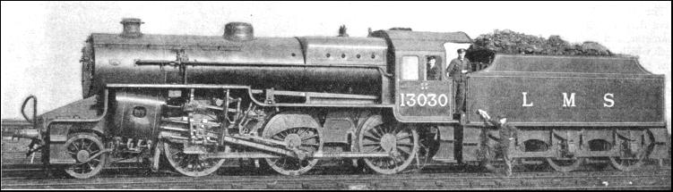 Of 0-8-0 locomotives the L.M.S. is the principal user. Hundreds of this wheel arrangement were built before the grouping by the late London and North Western Railway, many more by the Lancashire and Yorkshire Railway (which built the biggest and heaviest 0-8-0's in Britain), and a few by the Caledonian Railway. After the grouping a new and handsome standard design was turned out, with 19 in. by 26 in. cylinders, 200 lb. per sq. in. working pressure, 4 ft. 8-1/2 in. driving wheels. and a weight in running order of 60-3/4 tons ; a large number of this type also has been built. Before leaving the matter of eight-coupled freight engines, it is not without interest to recall that the only eight-coupled locomotives ever built by the Midland Railway were not for its own use, but for that of the Somerset and Dorset Joint Railway, of which it was part owner. This line has to work coal from the Somersetshire coalfield over 1 in 50 grades through the Mendip Hills. These 2-8-0 engines also form a part of the locomotive stock of the L.M.S., which is now responsible for providing all locomotive power on the Somerset and Dorset. Widely used as are ten-coupled tender locomotives for freight service in other countries, none have been built for British use, other than the solitary Midland example—now No. 2290 of the L.M.S.—which was a four-cylinder locomotive designed expressly for banking trains up the 1 in 37.7 grade of the Lickey incline in Worcestershire. But no further examples were built. No. 2290 has four 16-3/4 by 28 in. cylinders, 4 ft. 7-1/2 in. driving wheels, a working pressure of 180 lb. per sq. in., and a weight in running order of 73-3/4 tons.