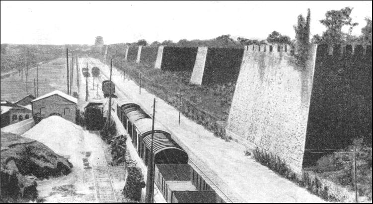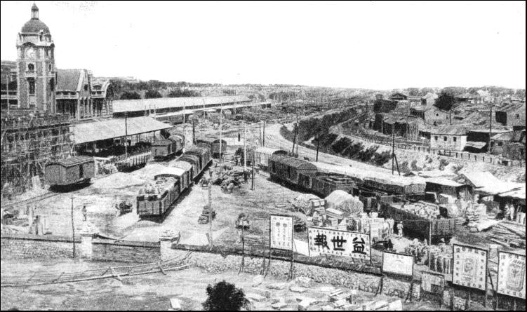 The line was rebuilt by the Chinese in 1898, and later became part of Nanking-Shanghai Railway. Woosung, scene of China's first railway, now has extensive workshops and yards for the maintenance of its modern locomotives and rolling stock. The construction of the main Nanking—Shanghai Railway was agreed upon between the Chinese Government and the British and Chinese Corporation, Ltd., in 1903, and the survey for a standard gauge (4 ft. 8-1/2 in.) line was completed in 1904. The first section of the railway, from Shanghai to Nanziang, was opened in November, 1905, followed at intervals by the lines to Wusih, Changchow, Chinkiang, and finally to Nanking in March, 1908. Though most of the country between Shanghai and Nanking is flat, some 300 bridges and 400 culverts were built during the construction of the railway. Most of the bridges are of concrete, but about 2,000 tons of steel bridgework was erected, all of which came from England. The whole of the land in the railway zone is closely cultivated, hut probably one-tenth of the area is given up to ancestral tombs, which undoubtedly are the cause of many unexpected deviations in the lay-out of the track, since these graves may not in any circumstance be moved or interfered with in any way. The railway is to-day well equipped with modern rolling stock, locomotives, and buildings. It has a mileage of 203. A remarkable offshoot of the Nanking-Shanghai railway is the Nanking City line, completed in 1908. This line, about eight miles long, is of standard gauge, but was originally introduced as a feeder line from the outlying districts of Nanking to the terminus of the railway from Shanghai, just outside the city. The city of Nanking, now the capital of the Chinese Republic, covers over fifteen square miles enclosed within enormous walls. The Nanking-Shanghai Railway is linked with the Tientsin-Pukow line by train ferry at Nanking.
