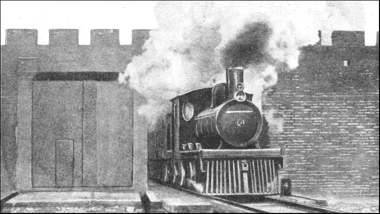 The engine frame was built up of channel iron from old pit head-gear, the cylinders from an old steam engine, and the boiler from a portable engine lying disused at the mine. The locomotive cost about £75. The reason for building the locomotive was that if the engineer had attempted to import one into China there would have been riots, and his "tramway" would have shared the fate of the Woosung "road" referred to earlier on this page. Work on the engine was suspended several times, and it is said that on one occasion the incomplete machine was buried in the ground so that Chinese officials should remain unaware of its presence. In June, 1881, however, the little locomotive started work on the tramway, which was extended about five years later along the side of the canal, to Lutai, where it now forms part of the main line. In August, 1888, the railway reached Tientsin, and extensions were made to the Great Wall of China at Shanhaikwan and to Tungchow, twelve miles from Peking. The main line, including a fifty-seven miles branch to Neuchwang, is just over 600 miles long, with some 150 additional miles of sidings. Bridges are numerous ; about 160 ft. in every mile of the line there is bridge-work. Many of the bridges have over twenty spans of 100 ft. each. The largest bridge is that over the River Lan Ho, and has ten spans of 100 ft., five of 200 ft., and two of 30 ft. This was the first large bridge to be built in China, and proved to be a difficult task. The Lan Ho in flood is most destructive, dashing trees and other debris against everything in its path. To ensure safety the masonry piers of the bridge are therefore carried down to bed-rock, 70 ft. below the surface of the water. The railway was finished after the Russo-Japanese War of 1904—5, when the Japanese military railway between Hsinmintun and Mukden was bought by the Chinese, and rebuilt to standard gauge. This gave through communication between Peking and Europe via the Trans-Siberian Railway. There are certain branch lines north of Peking, one of the most important being the Peking-Kalgan Railway, which starts from Fengtai, on the Peking-Mukden line, and runs to Kalgan, a distance of 125 miles. There is also a branch line of sixteen miles from Hsichihman, near Peking, to Mentonkon, whence anthracite is transported to Peking, and its neighbourhood. From Kalgan the line runs west through Suiyuan to Paotow. From Nankow, thirty-four miles from Fengtai, tourists on the railway set out on ponies for the famous Ming tombs in the mountains. The Peking-Kalgan Railway climbs the mighty Nankow Pass, the gateway to Mongolia. The Great Wall of China is built along the mountain tops across the pass, which is shared by the old Imperial North Road, a mountain torrent, and the railway. The line has to climb 1,641 ft. in a distance of under twelve miles. This has entailed a gradient of 1 in 40, with occasional stretches of 1 in 30. Even with this steep gradient it was also necessary to construct four tunnels, with a total length of 5,397 ft., and a "reverse" or zig-zag.