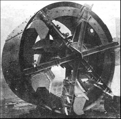 Greathead's shield was originally driven forward by means of screw-jacks which pressed against the flanges of the iron lining. Within the shield were the miners who shovelled back the earth that had been dislodged. The invention, gradual evolution and improvement of Greathead's shield made possible the construction on a large scale of London's network of tube railways, which have extended their lines to-day to most of the outlying suburbs of the Metropolis. The main principle of the construction of tube railways—that of driving the tunnels with a shield—is more widely known than the methods by which the engineers define and preserve their direction below ground and burrow, molelike, though not blindly, from point to point in the depths of the earth. Construction proceeds from several points along the line of the route allocated, and on completion the various sections of the tunnel or tube link up in perfect alignment. Since his work is below the surface, and since he has to contend with unforeseen geological difficulties, the tube engineer has none of the advantages of ordinary visual checking on his operations.