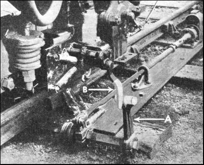 At some stations a gap wider than normal occurs between the train and the platform edge. To warn passengers of this, lights shine out from below the platform's coping. To make the warning more emphatic, these lights are often switched on automatically just before the train stops. This is effected by having a special projector lamp below the coping, which shines on to a photo-electric relay on the opposite side of the line, until the front of the train interrupts the projector lamp's ray. Then the cautioning lights flash on, and remain so until the ray across the track again meets the photo-electric-relay, after the train's departure. On the train coaches the doors are worked by air pressure and are electrically controlled. They close slowly, and the air pressure diminishes immediately before they are shut and enables them to be kept open easily by hand. The edges are fitted with soft rubber, so that there is no danger of anyone crushing his fingers. Not until all the doors are closed does the guard receive a light signal, and neither can the bell in the driver's cabin signal him to start. There are other less prominent but scarcely less important provisions made for the passenger's safety. The ticket offices and corridors are paved with non-slip floors. Even floods caused by an abnormal deluge or storm are anticipated by automatic pumps. The tunnels are constructed of cast-iron and made waterproof by cement. The track, built into the segments of the tunnel, cannot move. Fuses guard trains against excess current, while most of the cables are flame-proof. Both the driver and the guard of a train can cut off the current and can talk to one another by means of a telephone. No other system in the world is more efficiently protected against possible mishap, and the tube and underground railways have justly earned their reputation for being the safest method of transport in existence. After the adequate provision of safety devices on the tube railways, the most important consideration is the overhaul and maintenance of the rolling-stock, which includes all coaches and motors. This is carried out at regular intervals. The London Passenger Transport Board owns the works at Acton, where they are in a position to deal with the entire rolling-stock of the underground system. The overhaul programmes are arranged in advance, and the amount of material required is assembled in the shops before the cars arrive. The number of cars that have to go to the works for an overhaul every year is nearly 1,500. This figure includes both the motors and the trailers. The works are planned on a progressive system. Vehicles travel from shop to shop on conveyers, and stop at various points to allow for inspection and repair. These conveyers are rails laid across rollers which bridge haulage chains and are used to support the vehicles. The speeds of these conveyers arc regulated to synchronize wherever necessary. The shop is planned to deal with forty cars a week, although the system is adjustable, and the speeds of the conveyers can be altered. The power required to drive these 185 ft. long conveyers is 2.5 horse-power. At various intervals there are push buttons so that in the event of an accident or obstruction the conveyer can be stopped. Near each push button is a red light, which indicates whether the system is working or not. From these lights a foreman can see at once if all the conveyers are working satisfactorily. Should the conveyers or haulage chains propel cars beyond the correct limits, a trip lever, operated by the truck wheel, automatically cuts off the current.