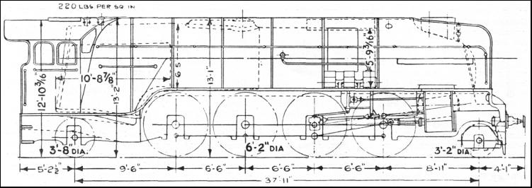These developments attracted attention all over France. Other French railways followed suit, and as some of the Paris-Orleans steam locomotive stock was becoming superfluous, owing to the extension of main line electrification from Paris to Tours as well as Vierzon, the Paris-Orleans rebuilt many more of its "Pacifics" for transfer to the Nord and the Est Companies. The news of these Paris-Orleans transformations spread to England when the London and North Eastern Railway was about to build new locomotives for service over the heavily-graded east coast main line between Edinburgh and Aberdeen. This is one of the most difficult main routes, from the locomotive point of view, in Great Britain. Gradients as steep as 1 in 70 abound. There are also numerous sharp curves demanding reductions of speed, most of them at the beginning of long adverse gradients so that the drivers are compelled to slow down severely just when they are in most need of the impetus for the climb that follows. From Inverkeithing, for example, after slowing round the curve to twenty miles an hour, drivers of south-bound trains have an ascent for two miles at 1 in 70 on to the Forth Bridge, and north-bound trains face a similar, though shorter, grade up to Dalgetty. From every intermediate stop, also, the trains have to accelerate up steep gradients, in some cases, indeed—as in both directions from Arbroath and Montrose, and southwards from Aberdeen—long and arduous climbs. The consequence has been that most of the heavy modern East Coast expresses have needed "double-heading"—that is, the provision of an assistant locomotive—over this section. The new type of engine had to be sufficiently powerful to obviate this. It was decided that to give an increased tractive force to enable the engines to get away more rapidly from these frequent stops and slowings, and also to move these heavy trains at higher speeds up the banks, the driving wheels should be reduced in diameter from the 6 ft. 8 in. of the "Pacifics" to 6 ft. 2 in., and the diameter of the cylinders increased from the 19 in. of the high-pressure "Pacifics" to 21 in. The next essential was to provide greater adhesion, so that this increased power might be transmitted to the rails without slipping, and the decision was made to use eight-coupled instead of six-coupled driving wheels.