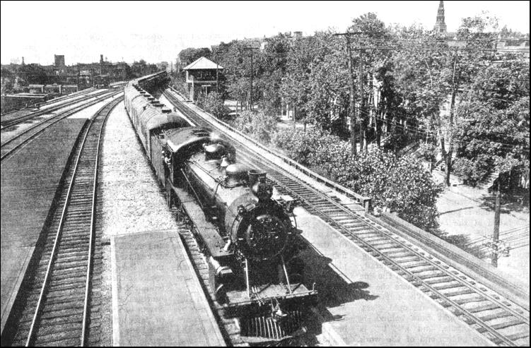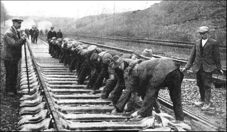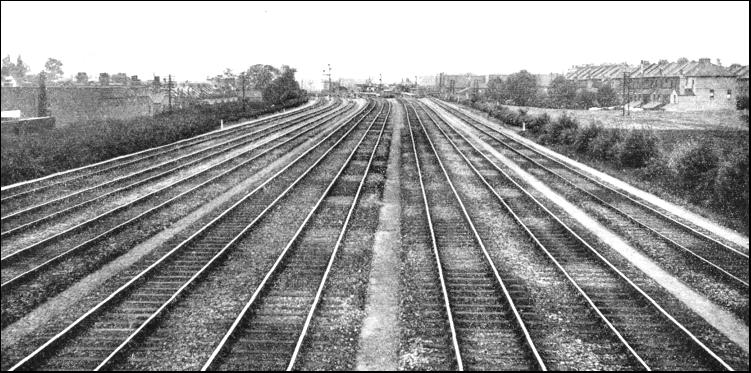 But the surface of such lines as these, from the running point of view, was still far from perfect, and it is to William Jessop, the engineer of a tram-line near Loughborough, Leicestershire, that we owe the idea which underlies track construction of to-day. In 1789 he laid a cast-iron rail which had a substantial upper flange, to carry the wheels, and a broad foot at one end, which was provided with a hole for spiking down to the sleepers, and at the same time formed a socket to accommodate the end of the next rail. These Jessop rails were only a yard long, but the principle had thus been established of lifting the wheels off the ground level, and of running them on the upper surface of the rails ; for this purpose, of course, flanged wheels were necessary, instead of the ordinary wagon wheels, which had been used up till that time. It is to this transfer from the plate-ways, with their angle-plates, to the rail and the flanged wheel, that we can probably trace the origin of the singular measurement of 4 ft. 8-1/2 in., which has become the standard track gauge in Great Britain and so many other countries. Originally, in all probability, the wagon wheels were roughly 5 ft. apart, and the upturned flanges of the angles were laid at slightly less than this distance from one another. But the change to flanged wheels transferred the measurement from the outsides of the two angles or rails to the insides ; and the deduction from 5 ft. of the width of two heads of the diminutive rails used in these early days brought the width of track down to the uncomfortable figure of 4 ft. 8-1/2 in., with which we are now saddled. As the first locomotives sent to America were of British origin, America also standardized 4 ft. 8-1/2 in. as its railway gauge ; the same figure also obtains generally on the continent of Europe, and explains why it has been possible for the British locomotive "Cock o' the North," of the L.N.E.R., to run trials on the French railways ; also why wagons can be run direct from Great Britain to destinations abroad by way of the Harwich-Zeebrugge train-ferry. Only in Russia, with a gauge of 5 ft., and Spain and Portugal, with 5 ft. 5-3/4 in., is there a difference of gauge from the normal. In Great Britain, Isambard Brunel departed from the standard by laying a gauge of 7 ft., but ultimately it had to be abandoned, at enormous expense, because of the impossibility of running through coaches or wagons between the G.W.R. and any other system, It is in Australia, probably, that this break of gauge difficulty is seen in its most acute form. Each State began to lay its railways on the gauge best suited to its own needs, with the result that the railways of Western Australia and Queensland are of the 3 ft. 6 in. gauge ; those of New South Wales and the Trans-Australian Railway from Kalgoorlie to Port Augusta are 4 ft. 8-1/2 in. ; and those of South Australia are partly 5 ft. 3 in. and partly 3 ft. 6 in. Consequently, any through journey across Australia, say, from Fremantle or Perth in Western Australia to Brisbane in Queensland, involves a number of changes of train, owing to break of gauge. In India, and also in Argentina, a gauge of 5 ft. 6 in. is in use on all the principal lines and is of considerable value, permitting more ample development of rolling stock—particularly of locomotives—than is possible on a gauge of 4 ft. 8-1/2 in. Ireland differs from Great Britain in having standardized a gauge of 5 ft. 3 in. In many parts of the world a narrower gauge, laid in the first instance from motives of economy, has now become standard ; South Africa and Japan, for example, use a gauge of 3 ft. 6 in., and many thousands of miles of track in other countries are laid either with this width of track or the closely associated metre gauge.