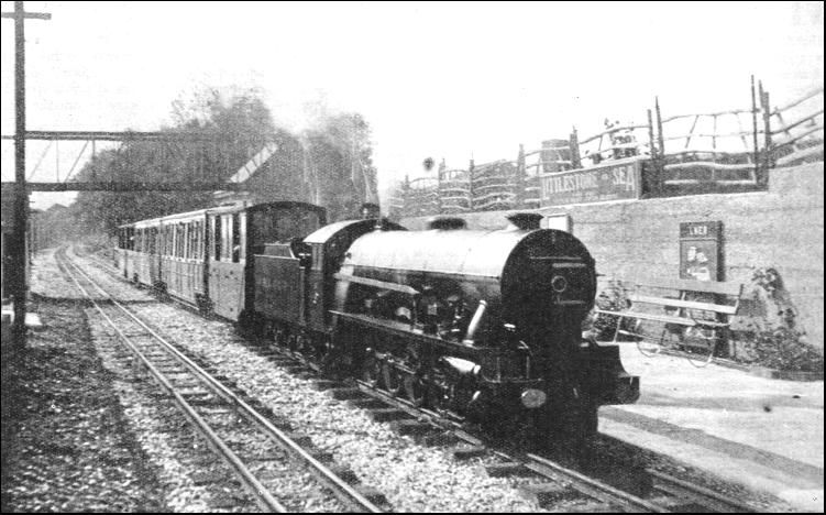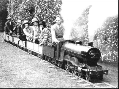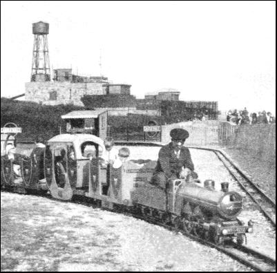 On certain other miniature railways the locomotives have "steam" outlines, but rely on petrol or Diesel crude oil engines for their propulsion. One of the earliest ventures of this kind was by the late C. W. Bartholomew, of Blakesley Hall, near Towcester, in Northamptonshire. He laid a 15-in. gauge railway to connect the Hall with the Stratford-on-Avon and Midland Junction Railway (now a part of the L.M.S.), at Blakesley Station, in order that coal and other stores might be brought up to the Hall in this way. To work the line he had built a locomotive designed externally as a 4-4-4 tank engine, but driven by a petrol motor, which worked the traffic successfully. The same principle has been adopted by the Scarborough Corporation on the popular railway which has been laid down in the pleasure gardens on the North Bay at that resort. Here, to give more accommodation in the trains, a wider gauge of 20 in. has been adopted, but the engines, modelled on the "Flying Scotsman Pacifics" of the L.N.E.R., are one-third full size, similar to those of the Romney, Hythe and Dymchurch Railway. They are driven, however, by Diesel engines instead of by steam.