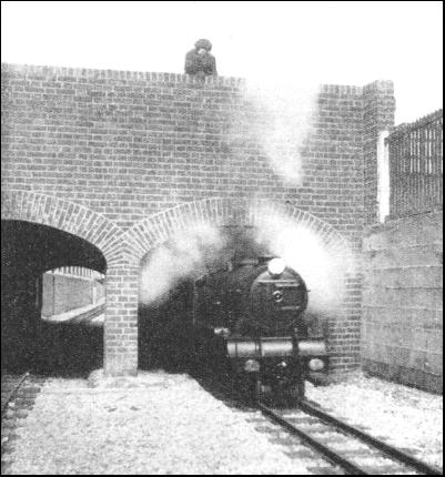 At the other end of the scale there are the many railways which have been built to gauges slightly wider than those of 15 in. and 20 in. with which this article has been principally concerned. North Wales in particular has long been famed for its so-called "toy railways." They were built in the first place to bring slate down from the mines inland to the coast. Best known of all these lines, probably, is the Festiniog Railway, which, in conjunction with the Welsh Highland Railway, forms an extensive system in the counties of Merioneth and Carnarvon. All these lines have been laid to a gauge of 1 ft. 11-1/2 in. The original Festiniog Railway starts at Portmadoc, the seaport in the north-eastern corner of Cardigan Bay, and runs up to Blaenau Festiniog, in the heart of the Welsh mountains, where there are extensive slate quarries. The most remarkable feature of this railway is that it has a perfectly even falling gradient from Festiniog down to the sea, with the result that the trains can he run down to the harbour by gravity alone, locomotive haulage being required only to run the empty wagons back to the quarries. In order to preserve the grade, a horseshoe bend is made by the track round a mountain glen at Tan-y-Bwlch, the two outer ends of the horseshoe being quite close to one another, on opposite sides of this deep valley. The engines used by the Festiniog line are also of considerable interest. Alone among British railways, this railway concentrated on building locomotives of the "Fairlie" type, which was the precursor of modern articulated engines. The "Fairlie" locomotives are "double-enders," with two independent pairs of four-coupled wheels, arranged as bogies, with freedom to swing round the curves ; each bogie has its own two cylinders, which are supplied with steam from a double-ended boiler with one central firebox. Each of these engines has a most peculiar appearance, therefore, as it has chimneys and domes at both ends, and the driver's cab in the middle. The Southern Railway also owns a line of narrow gauge, which is the longest railway of its kind in Great Britain. Originally the Lynton and Barnstaple Railway, this diminutive line, connecting the town of Barnstaple in North Devon with the coast at Lynton, has a total length of 19-1/4 miles, and was opened in 1898. Despite the change of ownership, the gauge is still the 1 ft. 11-1/2 in. with which the line was first laid. There are some very heavy gradients on the Lynton and Barnstaple Railway. Three and a half miles after leaving Barnstaple, the train begins to climb steadily at 1 in 50, through Chelfham and Brattan, for 8-1/2 miles to Blackmoor, where a height of roughly 850 ft. above sea-level is attained. Then follows a sharp drop, and still further climbing at 1 in 50 to the summit of the line, at Woody Bay Station, on the fringe of Exmoor, 950 ft. above the sea. From here the line falls steadily at the same inclination to Lynton. In view of the unusual limitations of a gauge no wider than 1 ft. 11-1/2 in., the rolling stock of the Lynton and Barnstaple Railway is exceptionally large. The passenger coaches are 35 ft. long and 6 ft. wide, but their weight has been kept down to a maximum of nine tons. In order to assure stability, with an overhang of 2 ft. on either side of the track, the coach-bodies are built low down on the wheels. The third-class coaches have seven compartments, and seat three passengers aside, so having a total seating capacity of forty-two passengers to a coach. There are four locomotives in use, all of the 2-6-2 pannier tank type, and also built with a very low centre of gravity. Cylinders are 10-1/2 in. diameter by 16 in. stroke, and the coupled wheels have a diameter of 2 ft. 9 in. Despite the fact that the total wheelbase of the engine is 17 ft. 9 in., by grouping the three pairs of coupled wheels together is a length of 6 ft. 6 in., and making the two end axles radial, the engines can traverse curves of as sharp a radius as 300 ft. This has enabled the engineers to sharpen the curvature of the line, and so to keep the costs of construction down to a reasonable figure ; only one viaduct of any magnitude was necessary. The locomotives weigh 22-1/2 tons each. Thus the Lynton and Barnstaple Railway is a further witness to what can be done in railway operation over gauges far narrower than the standard figure of 4 ft. 8-1/2 in. to which we are accustomed.