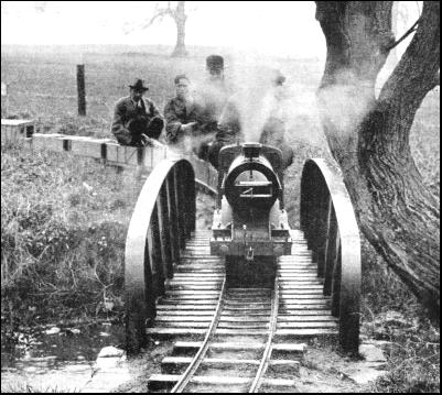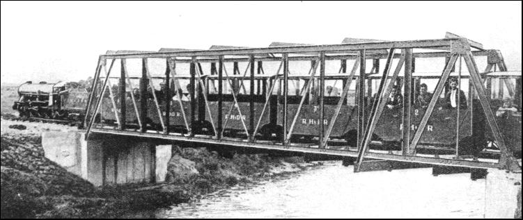Several of the main drainage canals and dykes on the Romney Marsh had to be crossed in the course of building the eight miles of line. The largest of these was adjacent to the Duke of York's summer camp at Jesson. The bridge is a single 56-ft. span, "N" girder, of the skew type, constructed in steel and resting on reinforced concrete abutments. The road over-bridge at the Warren has two 50-ft. tunnels, and was built in reinforced concrete in five and a half weeks. There is also a special extension of the Southern Railway into the Romney, Hythe and Dymchurch Railway's yard, and this was of considerable help in receiving transports of materials from the main line during the work of construction. While the railway was being built, the Duke of York visited his boys' camp at Jesson, Dymchurch, and expressed a desire to see the line. Special efforts were made to complete the 56-ft. span girder bridge, which then connected up New Romney with the boys' camp, before the appointed day. This feat was accomplished, and the Duke was able to cross the bridge and drive the first train to New Romney. The line was then, of course, not officially open, but this Royal "christening" gave some indication of the interest taken in the venture and foreshadowed its highly successful opening and first year of traffic.