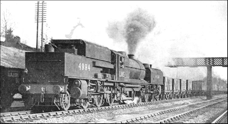 In 1928 Messrs. Kitson & Co. supplied two remarkable "Double Prairie" or 2-6-2 + 2-6-2 type "Kitson-Meyer" engines to the North Western Railway of India. Although built for the 2 ft. 6 in. gauge, the engines weigh 68-1/2 tons. They can pull 130 tons at 10 m.p.h. up 1 in 25 grades, where the curvature is of only 120 ft. radius. By way of contrast, the Great Southern Railway of Spain employs 2-8-0 + 0-8-0 "Kitson-Meyers" for the broad gauge of 5 ft. 6 in. They were designed to secure large hauling power with a comparatively small axle load, to deal with heavy mineral traffic on a light permanent way. They can take 854 tons over 1 in 100 grades at 10 m.p.h. on straight track. High speed is never attempted on the type of heavily graded, winding lines suitable for the "Kitson-Meyer," though passenger trains are regularly hauled by the type. The "Kitson-Meyer" is at its best where a very compact machine is required. Where curves will permit of a longer wheelbase, the "Beyer-Garratt," with its greater power and larger fuel supplies, is usually considered the more satisfactory engine. Not all articulated locomotives are driven through connecting and coupling rods. Horizontal shafts and gears are successfully used in many instances. Of the large number of different types of geared locomotives which have been invented, the American "Shay" type, first built for a logging railway in the 'seventies, is the best known. In the "Shay" geared engine the boiler and superstructure are carried on a single rigid frame, which rests on two, three, or four driven bogies. Every wheel is driven, including the wheels of the tender, if there is one. This means that every ounce of weight is available tor adhesion. The "Shay" locomotive is equipped with a vertical three-cylinder steam unit on the right-hand side of the boiler. This transmits its power to a horizontal revolving shaft, which in turn is connected by gearing with each axle of every bogie. By a system of sliding sockets and universal joints, the driving mechanism is flexible in every direction, but rigid in revolution. The absence of heavy coupling rods and counter-weights enables geared locomotives to exert even stresses upon the permanent way, and this makes them ideal for running over the light-rail track so often found in mountainous regions. The "Shay" type can mount hills of exceptional severity at speeds up to 7 m.p.h., and can maintain 15 to 20 m.p.h. on favourable down grades. Countries using "Shay" geared locomotives include Australia, Formosa, China, Chile, Ecuador, Bolivia, Guatemala, Mexico, Santo Domingo, Canada, as well as the United States. The geared locomotive has its draw-gear and buffing—twin "buffers," as known in Britain, are often dispensed with abroad—attached to the rigid main frame, and not to the mobile truck, as with most other articulated locomotives. Hundreds of different kinds of articulated steam locomotives have been invented, but the types here described have exerted a wider influence than all the rest put together. Many of the lesser types have never gone beyond the experimental stage. Some success has been gained with rare articulated locomotives in which the transmission of the drive has been effected by ball and sockets, or even by chains. There has also appeared a type of semi-articulated engine equipped with an ingenious design of axle, whereby certain of the driving wheels are flexible, while others, although coupled to them, are rigid. Twin locomotives, consisting of small tank engines arranged for coupling back to back, occasionally with a double-end tender in between, have also been employed with success, sometimes on British mining railways. A more recent development is that sometimes described as the "temporarily articulated" engine. It is the same as an ordinary rigid engine, except that one or more trailing axles, under the cab or tender, are equipped with two-cylinder steam drive which can be temporarily brought into action when required. The auxiliary two-cylinder engine is known as a "booster" and was first used in America in 1919, the reversible booster following in 1928. The first temporarily articulated locomotives, of a much earlier date, had drive on the leading wheels. A few L.N.E.R. engines of the 0-8-4, 2-8-2, and 4-4-2 types comprise the only booster-fitted locomotives found in Great Britain. The most interesting of the L.N.E.R. experiments is that made by Mr. H. N. Gresley, early in 1932. He took in hand two three-cylinder "Atlantic" (4-4-2) type express engines of the late North Eastern Railway, Nos. 727 and 2171, and rebuilt them in an original fashion. A four-wheeled bogie replaces the single trailing axle, and projects partly under the tender. The engine and tender are both attached to the flexible bogie, and a powerful booster is applied to the bogie's front axle. The rear end of the tender is carried on another four-wheeled bogie, this being idle. The booster is brought into play by the engine driver when starting with heavy loads, and when climbing steep hills. In tests made, No. 727, without booster assistance, was able to start 496 tons from rest on the level ; but with the booster in operation, a load of 746 tons was successfully started.