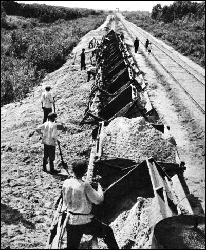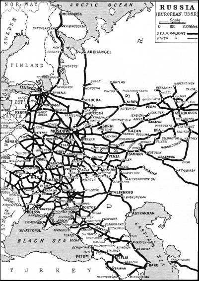 In Russia to-day, even more than in America, railway distances are thought of not in miles, but in hundreds of miles. Many important railway journeys have to be timed in days rather than hours. This is indicated on the page devoted to the "Trans-Siberian Express," and there is no better way of grasping the extent of the Soviet Union than taking a real or imaginary railway journey from the Baltic to the Sea of Japan. Before the war, except for a few special passenger trains, Russian railway travel was more amusing than expeditious. If the passenger were in a hurry, it was not even amusing. Travel was slow ; locomotives, vehicles, and equipment frequently verged on the antique, and departmental matters were tied up with red tape. Signalling arrangements were primitive in the extreme. Russia has always favoured the broad (5 ft.) gauge for her trunk railways, with a generous construction gauge, and the coaches have thus always been much loftier and more spacious than those in Great Britain. Nevertheless, the pre-war Russian railway carriage had many drawbacks. It had few windows, it was lighted by candles, often stuck to little shelves by their own tallow, and not infrequently it was kept in a bad condition. In two successive wars, the Russo-Japanese War and the European War, the, country suffered from the inadequacy of her railway communications. Long single-track routes were called upon suddenly to carry a great volume of traffic. As might have been expected, arrangements broke down at ; the most inopportune moments. Some authorities maintain that, as a direct result of the failure of her railways to support her huge army, Russia had Germany thundering at her very doors on the eve of the 1917 Revolution. Not until the inauguration of the Five-Year Plan, by the Congress of Soviets, were constructive measures for transport reform at last introduced. During the revolutionary period, the Russian railways were reduced to a sad condition. With the country in the throes of civil war and incessant commotion, rail communication was reduced, to a state of unbelievable confusion. A locomotive in good repair was rare, and usually had a couple of machine-guns mounted on its wide running plates to guard against evil-doers. But machine-guns could not guard a locomotive from damage by inexperienced enginemen, which often occurred. Anything approaching organized working was unknown during those dark years. The first and second Five-Year Plans included well-thought-out proposals for the modernization of the railway system generally, the doubling of tracks on all important routes, complete reorganization of all departments, the building of hundreds of new locomotives of the most modern designs, and the introduction of electric and Diesel traction in appropriate districts. One of the most ambitious dreams of the present-day Russian transport chiefs is the "Great Northern Route," which is to consist of an all-electric railway connecting European Russia with the Far East, running roughly parallel to the existing Trans-Siberian Railway, but following a considerably shorter course through the extreme northern districts of Siberia. This has yet to be realized, but there is no doubt at all that enormous strides have been made in the development of the existing system. An important step has been the education of the Russian worker to appreciate and to take a pride in his particular industry. This policy naturally applies to the railways as well as to many other things. In the earliest days of the Soviet Union, "propaganda trains" were sent out to teach citizens in remote areas the ways and ideals of the communist system. In recent years these have tended to teach more about Russian industries, now that communism in Russia is an accepted fact. School cars are included for the instruction of children living in the remotest places served by the railway, while bookshops and other amenities are included for older persons.