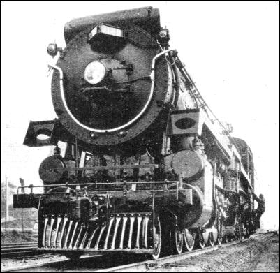 PICTURE the Windsor Station at Montreal. The "Trans-Canada Limited" express is waiting to begin its 2,886-mile journey to Vancouver. The train—long, smooth, powerful, the last word in mechanical efficiency—will soon be sweeping over the rails in a continuous pulsating rhythm to glide at last, quite unruffled by the feat, into Vancouver. "Red-caps"—name for porters in Canada, where "porter" is a sleeping-car attendant—are taking the luggage, while some of the passengers walk down the length of the express, which comprises ten passenger coaches ; two parlour-cars that go as far as Ottawa, a dining-car four standard sleepers, two ordinary compartment cars and a lounge car. At the head of the train is the locomotive She is a mighty monster of the 3,100 type—the pride of the Canadian Pacific shops which built her. Nearly 100 ft. in length, with tender included, she weighs 316-1/2 tons, this figure having been reduced to a minimum by the extensive use of nickel-steel parts. The engine has a tractive effort of 60,800 lb.; equal, that is, to 3,685 horse-power. There are eight pairs of wheels—a four-wheel leading truck, eight "drivers," and a four-wheel trailing truck. The driving wheels have a diameter of 6 ft. 3 in., and the cast nickel-steel cylinders are each 25-1/2 in. bore with a stroke ot 30 in The boiler supplying steam to these cylinders works at a pressure of 275 lb. per square inch. The coal capacity of the tender is 18-1/2 tons. The water tank holds 12,000 imperial gallons. A mechanical stoker lightens the duties of the fireman. From whatever aspect this superlative locomotive is viewed a feeling of awe is inspired by the triumph of engineering and design she epitomizes. Steam hisses, metal glistens, the passengers stand, held in admiration until they realize that they have only a few minutes to find their seats again. And now, with hardly a perceptible jerk, the journey has begun. It is "Au revoir Montreal !"