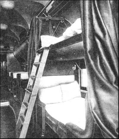 It is, of course, impossible to journey through this part of the Dominion without recalling the railway's mighty achievements, but passengers naturally want to explore the train. They can walk right through the cars to the solarium lounge car, the last coach on the "Trans-Canada Limited" express and invariably its most popular section. The coach contains a solarium room, fitted with vitaglass windows leading out to the observation platform. Apart from this there is the closed-in observation room proper, which has a buffet service, a small library, a smoking - room, shower - baths and ladies' lounge—all in one coach. The comforts and the conveniences of the "Trans-Canada Limited" make it comparable to an hotel on wheels. The train staff is a little army ; besides the driver—known in Canada as the "engineer"—and the fireman, the express has a conductor, trainman, sleeping-car conductor, one porter to each sleeping-car, a parlour-car attendant and the dining-car staff comprising chef, stewards, and waiters. The passengers have supper in the dining-car which seats thirty-six persons at a time. Afterwards, they quietly enjoy cigarettes and coffee while the train thunders steadily westward, towards the shores of Lake Superior. At last they turn in and sleep soundly If desired, a "valet service" will press suits while the owners sleep.