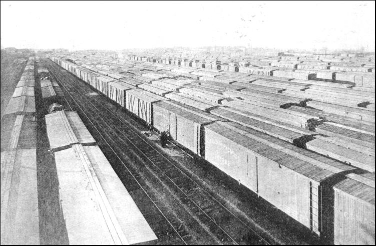 It was built in four years, but the labour was terrific. Of the £2,400,000 expended on this section of two hundred miles, approximately £400,000 were spent for explosive material. It seems incredible that the cost of building some parts of the line over which the train travels was little short of £140,000 per mile. The journey across Canada cannot fail to make the traveller appreciate the Dominion's debt to the railway. Cities owe their very existence to this narrow band of steel that spans a continent, while thousands of acres of prairie land have been opened up for agricultural development. By Lake Superior are the famous twin cities Port Arthur and Fort William, forming the outlet through which flows the great wheat crop of Western Canada. The railway, which has made accessible these inconceivably vast crops of grain, also handles the gigantic volume of wheat pouring in from Manitoba, Saskatchewan and Alberta. Every year the railway company masses over 40,000 box cars with a combined capacity of over 1,570,000 tons, each of these capable of carrying over 60,000,000 bushels of grain per journey. Estimating that each car will make five journeys between the grain fields and the head of the Great Lakes or Vancouver, the company is in a position to shift 300,000,000 bushels of grain during the four months of the grain rush. This calls for considerable organization, as may well be imagined. The magnitude of the concentration of the box cars can be judged when it is known that if placed end to end they would stretch for 320 miles, and that it would take the fastest trans-continental train eight hours to pass this line. Eleven hundred freight locomotives are needed to keep the grain and normal traffic moving in western Canada.