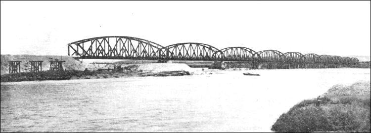 At Adana the Turkish State Railways come to an end. We enter Syria, and the line now belongs to a French company as far as Aleppo. Shortly beyond Adana, the River Tihun is crossed by a bridge composed of four steel girders, each of 164 ft. span. The line rises now again beyond the station ot Mamourié, and negotiates the Amanus Mountain range by a series of fourteen tunnels. The construction of this part of the line was fraught with considerable difficulties because of the inaccessibility of the mountains. Between the stations of Mamourié and Islahie, a distance of twenty-one miles, nearly six miles of tunnels had to be constructed, the longest of which is the Bagtschi Tunnel, with a length of 5,365 yards. This tunnel was bored through hard rock which was sufficiently compact over the second halt to render lining unnecessary. It is located at an average height of 2,500 ft. above sea-level. We rapidly descend and, near Radjoun, cross a deep gorge by the Here Dere Viaduct, a steel girder construction consisting of three spans each of 243 ft., one span of 131 ft., and one of 46 ft. The girders rest on towers of steel trestle work 280 ft. high. We next travel in a south-easterly direction to Aleppo, which is reached shortly after 10 p.m. Aleppo is an important commercial town, the history of which dates back to the earliest times. It is famous for its "Souks," as the bazaars are called here. From Aleppo a railway line branches off to Tripoli on the Mediterranean, whence a motor-coach belonging to the International Sleeping Car Company conveys passengers over well-kept roads to Beirut and Haifa in eleven hours. From Haifa a through train, with dining cars, leaves on the following morning at 8.30, arriving at Cairo the same evening at 10.30 p.m. The " Taurus Express " leaves Aleppo at 10.40 p.m. and runs through the fertile plains ot Syria. Near Jerablus the River Euphrates is crossed by a bridge consisting of ten steel girder spans of 263 ft. each. This bridge is a fine construction resting on masonry piers built on oak piles, which were driven by means of special steel sheet cofferdams to a depth of over 30 ft. below the river bed.