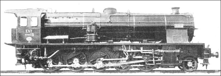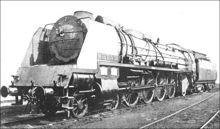 Brest is 387-3/4 miles from Paris; the best train leaves the capital at 3.25 in the afternoons and is in Brest three-quarters of an hour before midnight. This train runs from Paris to Le Mans without a stop, but beyond Rennes calls are made at a number of places, and the run entails several fast intermediate timings. The express rail-car provides an invaluable means of quick passenger transport over cross-country lines where the number of travellers is limited but fairly constant. The Western main line of the State Railways is also unique in France, and probably on the whole mainland of Europe, in that track water-troughs are provided to facilitate fast non-stop runs over long distances. Until May, 1933, the old Orleans lines to Quiberon and Quimper invaded the State Railways' preserve of Brittany. In that month, however, the State took over the Orleans lines in question, together with locomotives and rolling stock for working them, thereby increasing their total route mileage to 5,965, including over 238 miles of metre-gauge lines. Though the State Railways have not yet adopted main-line electrification to the extent achieved by the Paris-Orleans-Midi, a considerable mileage of their suburban passenger lines in and around Paris is electrically operated. Moreover, the main line from Paris to Le Mans was scheduled in 1935 for electrification. As far back as 1900, a start was made with the line from Paris to Versailles, on the direct current system at 650 volts, third-rail contact being used. This line uses the Invalides Station, the State Railways' third Paris terminus. Between 1924 and 1928, the same system was applied to the line from St. Lazare to Versailles, together with the branch to St. Germain. On other suburban lines, the "push-and-pull" system, familiar on British branch lines, has been developed to serve heavy business traffic, a practice now prevalent on other lines out of Paris as well. There is one long main line of the State Railways which has not yet been considered—that from Paris to Bordeaux via Thouars. This is considerably longer than the direct route of the Paris-Orleans Railway, and is thus of less significance. The distance from Paris (Montparnasse) to Bordeaux is 382 miles, that by the Orleans line being only 368. An important branch, however, extends from this State-owned Bordeaux line, providing through communication between Paris, La Rochelle, and Rochefort, on the west coast, eventually linking up with the Bordeaux line again at Saintes. In the early days, the locomotives used on the Rouen and Havre line were designed by Mr. Buddicom, who had worked with Alexander Allan in England. They resembled Allan "Crewe" locomotives, which were so familiar on the London and North Western and on certain of the Scottish railways in the early part of the Victorian era. One of the old Buddicom engines remained in service until well into the present century, and is now preserved as a relic. In the latter part of the nineteenth century, the Western locomotives resembled those of other French railways. A Webb compound was ordered from England and tested, but even in France, the land of the compound for so many years, the Webb engine was not appreciated. For a while, some neat 4-4-0 locomotives with inside cylinders worked the best trains, but 1906 saw the advent of much larger 4-6-0 locomotives, ugly in appearance but of undoubted capability. In the early part of the century there was not so much a lack of good designs as a lack of modernization on a large scale. Just before the outbreak of the war of 1914-18, the Locomotive Department placed an urgent order for fifty general service passenger locomotives with the North British Locomotive Company, of Glasgow. Only the barest general specifications were given. In due course the engines arrived from Scotland, and they consisted of fifty 4-6-0's practically identical with the well-known "Castle" class of the old Highland Railway. The cabs and running plates were slightly wider ; apart from this, the locomotives might have come straight off the Highland. Though fifty went to France, the Highland itself never possessed more than nineteen "Castle" class engines. Since 1928 great strides have been made in the modernization of the French State locomotive stock, and the standard express passenger locomotive of to-day is of the four-cylinder compound 4-8-2 type, similar to the class introduced some years before on the Eastern Railway of France. The big 2-8-2 tank locomotives used on the "push-and-pull" suburban trains similarly recall "Eastern" design. The trains each consist of nine coaches, the engine being permanently coupled at the Paris end. On the main lines, the eight-coupled locomotives are supplemented by large four-cylinder compound 4-6-2 engines, while at the beginning of 1933 a three-cylinder simple 4-8-2 with poppet valve-gear and a mechanical stoker made its appearance.