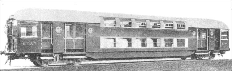 Some of the old coaches of the State Railways were indifferent vehicles. On the most important Paris suburban trains, great use was made of the "Imperial" coach, which was a simple double-decker with stairs at either end. The lower deck contained ordinary second-class compartments with but little head-room. On the upper deck there were seats for third-class passengers, protected after a fashion by an awning, though open at the sides. A third-class journey through the Batignolles Tunnel on one of these coaches was not recommended. The double-deck system has remained in Paris, and is applied to some of the most modern suburban bogie coaches, but these are very different from the old "Imperials." The present-day corridor coaches used on main-line services include some remarkably fine vehicles. Some of them are said to be the largest passenger coaches in Europe. On the boat expresses, instead of Pullmans, special saloon coaches are in operation, and these are not dissimilar to the special saloons on the British Great Western Railway. As we have seen, Couchettes (berths without bedclothes) provide the sleeping accommodation on the night trains to Le Havre and Dieppe. On the longer-distance night trains, such as those to Brest and Quimper in Brittany, the fully-fledged sleeping car is in evidence, as well as Couchettes and Lits-Toilettes compartments. Some time ago an ingenious arrangement was evolved for giving lying-down accommodation on excursion trains without sacrificing any space. A third-class compartment seating the usual four passengers a side can be made to give sleeping berths ot a simple type to all eight occupants. By day the four successive berths on either side are let down to rest one on top of the other, forming the day seat. Enormous progress has been made in the signalling and permanent way departments of the French State Railways. "Flyovers" have replaced old-fashioned and inconvenient level junctions at important points, and gravity marshalling yards have been laid out at Le Mans, at Trappes, near Versailles, and also outside Rouen. In the Paris suburban area, centralized traffic control has been brought into use on the system pioneered on the Metropolitan branch line to Stanmore in Great Britain. There are many other fascinating features of the modernized and rejuvenated French State Railways which could be described in a more specialized work, but now we must turn our eyes eastward, and deal with the two great systems which handle the traffic between France and Central Europe, namely the Eastern Railway and the Alsace-Lorraine Railways.