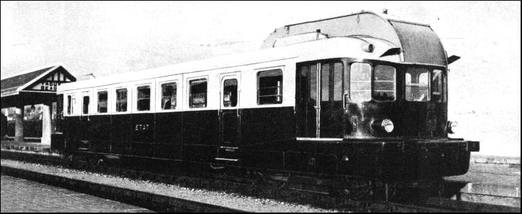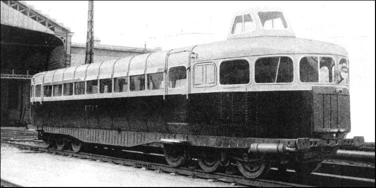 IT has fallen to France to play an important part in the development of the express rail-car, which, in its various forms, is rendering excellent service throughout the world. American streamlined trains are very light in construction and driven by electricity from current supplied by their own Diesel engines. These trains, with their amazing speeds of 100 miles an hour, have been evolved after much research and experiment. It is in this connexion that the rail-car has played so important a part—providing a fast, self-propelling vehicle for use on the railways and capable of being run at very low cost. The single coach has, in course of time, been extended to a train of two, three or several more cars. The various types in use on the French railways give an indication of the advance made not only in the improvement in this form of transport, but also in the evolution of special rail-cars for the differing traffic conditions on individual routes. In France Les Autorails, as they are known, are specially built for certain services. There are high-speed rail-cars with comfortable accommodation, which have been built for long distance travelling on the main lines. Others have been designed with powerful engines and large carrying capacity to serve as connecting links between important centres on the principal railway routes. Some types of rail-car are in service on branch lines to give greater facilities for fast travel. For tourists, the French railways have provided a special type of light rail-car, which offers an excellent view of the scenery along the line. The Bugatti petrol-driven trains of the French State railways are notable examples of the long-distance expresses. These run between Paris and Le Havre. During the summer months a service of Bugatti trains also runs between Paris and Deauville. On the Paris-Lyons-Mediterranean line also, the Bugatti trains are very interesting : air resistance has been reduced to a minimum by streamlining the body-work of the coaches. These P.L.M. trains consist of a motor-coach to which is coupled a passenger car. Each is carried on two eight-wheeled bogies. The design of the bogies is ingenious and contains features not usually found in railway work of this nature. The bogie frames carry the main coach chassis by means of a central pivot consisting of a cylinder full of oil. This cylinder contains a piston—which enables the device to serve as a shock-absorber—as well as a bearing round which the bogie swings when negotiating curves.