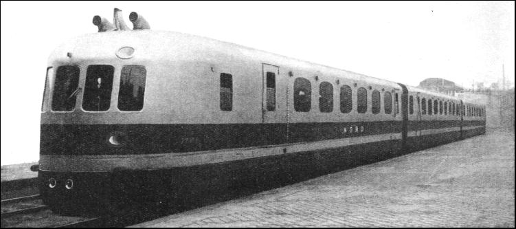 Many fine speed records stand to the credit of the French rail-cars. A Bugatti express of the type operating between Paris and Deauville and on the Paris-Havre route, has on test achieved a speed of 120 miles an hour. These trains display a remarkable stability when rounding curves. It has been suggested that the rail-cars, with their high speeds, may be regarded as serious rivals to the air liners on the main passenger routes. This does not seem improbable, since aerodromes are often at a considerable distance from the towns which they serve, whereas the railway stations are situated centrally. Speed was not, however, the only consideration of the French engineers when they were designing their rail-cars. A high standard of comfort has been attained by careful attention to air conditioning so that the draughts so often associated with fast railway travel have been eliminated. The expedient of warming the air supply to the coaches by means of the engine radiators has also proved successful. Another feature that has greatly contributed to comfortable travel in these trains is the employment, where-ever practicable, of rubber for insulating purposes. The body of the coach is attached to the chassis by means of rubber-lined brackets so that no vibration is transmitted from the track to the passengers. The steel tyres of the wheels also are cushioned to prevent vibration.