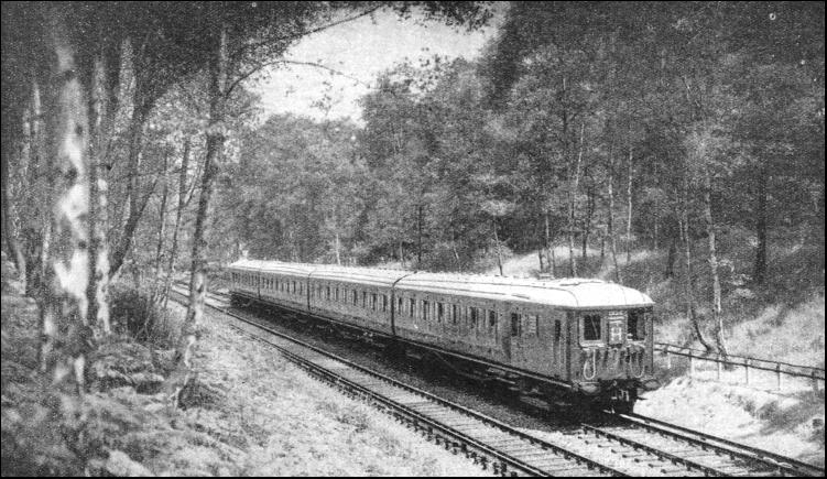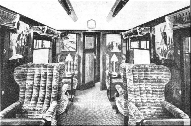 For suburban service, multiple-unit trains are in almost universal use ; the Southern units are of three cars, a third-class motor and brake-coach at each end, and a composite first and third-class coach in the centre. Each motor-coach is provided with motor-driving equipment and brushes for picking up the current from the live rail ; it also has driving compartments at each end, but at whichever end the driver may be working, he controls the working of both motors. At "rush hours" two units are coupled together, making six cars, driven by motors at four different points along the length of the train ; but all the motors are still under the control of the one driver ; hence the name "multiple unit." At the busiest times, two third-class "trailer" coaches are attached, between the two motor-driven units, to provide additional accommodation, making eight cars in all. But the use of multiple-unit trains for long-distance work is more unusual. For various reasons, however, the Southern directors decided to extend multiple-unit working to the coast. One reason was that the traffic, with its "rush hours" to London in the mornings, and from London in the evenings, is not very dissimilar from that in the suburban area. Another reason was the frequency of junctions along the route, with the accompanying difficulty of wide gaps in the conductor rails through the switch and crossing work. These gaps are of no consequence in multiple-unit working, as current is being picked up at various points along the train ; but with independent electric locomotives it would have been necessary, either to attempt to close these gaps in some way—which would have been difficult—or to provide the junction sections of the line with overhead as well as third-rail conductors, and to equip the locomotives for both overhead and third-rail working. Otherwise an electric locomotive might stop on one of the gaps and be unable to re-start. The result of the decision in favour of multiple-unit trains is that all goods traffic has to be worked by steam locomotives, for the most part during the period late at night when the electric service is suspended. Although much of the stock used in the suburban electric services (trailer cars in particular) was adapted from the coaches in use in steam days, all the rolling-stock on the long-distance services has been specially built for the electrification. For the extension to Brighton and Worthing alone 285 new cars were built, including 38 Pullman cars. The most remarkable units, of course, are those used in the all-Pullman "Brighton Belle." Never previously in railway history have "motor Pullmans" been constructed. Three units have been built for this service, each comprising five cars measuring 68 ft. 9 in. over the buffers, and all equipped in the most up-to-date Pullman fashion. The motor Pullmans arc the heaviest vehicles yet put on British metals, for they weigh 62 tons apiece. A complete unit consists of third-class motor Pullman brakes at each end, furnished with driving compartments, a third-class Pullman, and two first-class Pullmans with kitchens, together weighing 249 tons, and accommodating 152 third-class and 40 first-class passengers. At busy times two units are run in conjunction, making 10 cars and weighing 498 tons, and the third unit is kept in reserve. Then there are the corridor units for the ordinary express trains, each made up of six coaches (one of which is a Pullman car), seating 236 third-class and 72 first-class passengers, and weighing 266 tons. At "rush hours" these units are run in pairs, and with their twelve coaches, weighing 532 tons, they are the biggest multiple-unit trains in the world. Seating accommodation is provided for over 600 passengers per train, and refreshments are served to passengers in their compartments by the attendants from the Pullman cars. Thirty-three four-coach non-corridor units, weighing 139 tons each, have also been provided for the slow and the semi-fast services.