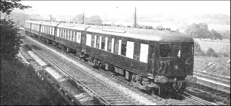 Probably the most remarkable system of junctions in the country is that north of Croydon. Here the main line from Victoria meets that from London Bridge ; both are four-tracked, the former having its fast lines on the west side and slow lines on the east side, and the latter with its fast lines in the centre, and the up and down slow lines outside. The slow lines from Victoria have to be brought across to the opposite, or east, side of the fast lines before reaching East Croydon ; the down slow line from London Bridge has to be carried across the fast lines to their west side, in order to join the up slow line ; and, in addition, both London Bridge and. Victoria lines have to throw off a branch to West Croydon. All this is done by a series of flying and burrowing junctions, with the help of which conflicting train movements are practically eliminated. Another complicated junction system occurs where the old South-Eastern main line crosses the old Chatham main line near Chislehurst. Apart, therefore, from the Wimbledon and Waterloo track re-arrangement which it is proposed to undertake, the Southern Railway management, in setting about its gigantic task of suburban electrification, has found its ramified suburban junctions arranged for steam trains in such a way as to facilitate electric operation to the utmost. The current for the long-distance electrification, from Purley on to Brighton and Worthing, is taken from the grid of the Central Electricity Board From three of its sub-stations at Croydon, Three Bridges, and Southwick, the main 132,000-volt system feeds transformers giving supplies to the railway high-tension system, at 33,000 volts, 50 cycles. But the main feature of interest in this installation is the way in which all the eighteen railway sub-stations, transforming the current from 33,000 volts to the line voltage of 650 D.C., with which the conductor rails are charged, are distantly controlled from one central control room at Three Bridges. The two controllers at Three Bridges sit at a desk in the middle of the large D-shaped room, which forms the upper storey of the control building at Three Bridges. Round the semi-circular side of the D, in their full view as they sit, is a diagrammatic representation of the entire area under their control. Each sub-station is shown on this long panel, and by means of light indications the controllers arc kept continuously aware of what is going on at each sub-station. The development of a fault at any one of the sub-stations immediately becomes apparent, both visually and audibly, on the main control panel. Temporarily that defective sub-station can he cut out directly from the control room, and current fed to the affected section from another source until men, dispatched at once to rectify the trouble, have done their work. Telephonic communication is provided between the control office and each sub-station. The fact that all these sub-stations are normally unattended makes, of course, for considerable economy ; it is the most extensive system of remote control in existence, and functions perfectly. Another novelty at these sub-stations is that, instead of the rotary converters hitherto almost universally employed to make the change from alternating to direct current, each station contains a single 2,500-kilowatt rectifier, fed with current by an outside transformer. Now the trains themselves require description. Throughout the Southern electrification area "multiple-unit" electric trains are in use. The two methods of working electric services are, first, to use independent electric locomotives, and second, to equip each "unit" of rolling stock in such a way that it can propel itself. The former has the advantage that trains made up of ordinary passenger stock, and also freight trains, can be worked over electrified lines. In the latter type each train is a self-contained unit, requiring the attachment of no locomotive, nor the running of the locomotive round at the terminus before returning.