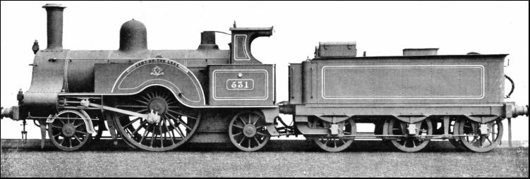 Seeing that the London and North Western Railway, by its acquisition of the Liverpool and Manchester Railway, compasses practically the entire history of the steam locomotive, it has played a very important part in the development of the railway engine. It was on the Liverpool and Manchester Railway that the railway locomotive was born, where it assumed its type and commercial characteristics, and where the lines indicative of high speed were first worked out. From the "Rocket" to the "Sir Gilbert Claughton," the latest type developed upon this system, or the ponderous "Mallet," is a far cry, but despite the vast strides which have been made during the interval, fundamentally the latter do not differ from the former ; the basic principles are the same. Thus the story of the London and North Western Railway is virtually the story of the locomotive. Volumes could be written upon the latter, and the various developments that have been made, either in the interests of increased speed, augmented haulage power, improved efficiency, or enhanced economy. Many names, inseparable from the evolution of the locomotive—Trevithick, Allan, Bury, Ramsbottom, Webb, Whale, Cooke—are associated with the London and North Western Railway, and its engines of different epochs—milestones in the history of development. Since 1843, when the works were laid down at Crewe for the repair of engines and rolling stock, but which subsequently became the locomotive building-cradle of the system, over 5,000 engines have been built. As may be supposed, among these are several which stand out more prominently than their contemporaries, either because of some remarkable performance, or because they introduced some new feature which either succeeded or failed, or provoked a storm of profitable discussion. In 1847 Trevithick designed the "Cornwall," having drivers 102 inches in diameter, and with the boiler under the driving axle. She was a failure, but when rebuilt by Ramsbottom in 1858 she retrieved her reputation. Before she was withdrawn from service in 1904 she had covered 919,526 miles. These huge single drivers put up some fine speed records, especially when the conditions were favourable. The four-wheeled coupled locomotive with large drivers was a logical development in order to secure increased adhesion, and engines of this type acquitted themselves quite as famously. The "Hardwicke," with cylinders of 17 inches diameter and 24-inch stroke and drivers of 81 inches diameter, which in the famous race to Scotland during 1895 hauled the West Coast express from Crewe to Carlisle, put up a marvellous record. Notwithstanding the heavy pull over Shap Fell, with its rise of 1 in 75, the engine surmounted the bank, 6 miles in length, at a speed of 45 miles per hour, and put up an average of 67.2 miles per hour for the whole 141 miles. The "Charles Dickens" was another famous engine of this class, achieving notoriety for putting to her credit the greatest number of miles in regular express running by making the double journey between London and Manchester every day until 2,000,000 miles were recorded. Another doughty engine was the compound "Ionic," with two high-pressure cylinders of 15 inches diameter, and a low-pressure cylinder of 30 inches by a common stroke of 24 inches, and four coupled drivers of 85 inches diameter. On September 8th this engine hauled a train over the 299 miles between Euston and Carlisle without a stop, and thus created a world's record in non-stop performances. The first engine which was built at Crewe for the express passenger traffic weighed about 20 tons, and hauled a load of some 40 tons at speeds ranging between 20 and 30 miles per hour. The latest express engines which have been turned out of the Crewe shops exceed 100 tons complete with tender, and are capable of. hauling loads weighing 400 tons at 60 miles an hour. The latest achievement of the London and North Western Railway is the "Sir Gilbert Claughton." The railway has achieved a world-wide reputation for speed, comfort in travelling, luxury of its rolling stock, smoothness in running, and prompt service. These features are certain to attract traffic, and this fact is reflected by the annual transportation of over 80,000,000 passengers, the carriage of nearly 60,000,000 tons of merchandise, and the completion of approximately 50,000,000 train miles. This huge business serves to bring in a revenue of over £16,000,000 per annum, which is greater than that of any other British railway system, while its capital of £124,000,000 serves to justify the claim of the London and North Western Railway as being the "biggest joint stock corporation in the world."
