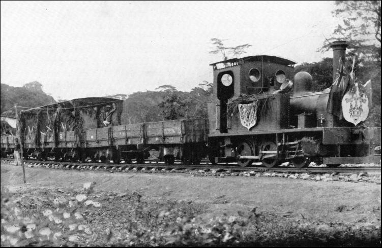 In 1899, prior to the outbreak of the war, Mr. Frederic Shelford, who had taken over the reins of railway building operations upon the retirement of his father, and who inherited the pioneer's enthusiasm in a vigorous railway expansion policy for the Gold Coast, matured plans for continuing northwards from Tarkwa to Coomassie. Prospectors scouring the country north of the existing gold district had discovered further deposits of the yellow metal. Mr. Shelford, having been on the spot, recognised the extent of this later discovery, as well as the possibilities of developing other resources which were lying dormant. Thus the moment was opportune for extension, and he communicated his views to the Right Honourable Joseph Chamberlain, who was then Colonial Secretary. The Minister was sympathetic, but a counter-proposal had been advanced by Sir William Maxwell, the Governor of the Gold Coast, for the building of a line from Accra, the English capital, to Coomassie. Mr. Chamberlain agreed that a railway should be built to the Ashanti stronghold, though he suggested that surveys should be made both from Accra and Tarkwa respectively to Coomassie. He promised, whichever route was the more favourable, that construction should be undertaken without delay, as he was fully alive to the urgent necessity of the enterprise. The survey between Tarkwa and Coomassie was undertaken by Mr. Frederic Shelford personally, and he started out with one assistant and fifty native porters. Progress was found to be even more difficult than it had been between the coast and Tarkwa. It was an endless tramp through a succession of evil swamps and dense jungle, where the rainfall is terrific, 4 or 5 inches of water being by no means uncommon in a single "tropical shower." There was not a single native track to help Mr. Shelford. His compass was his sole guide, and he hacked and hewed his path foot by foot. In order that he should not be impeded in his reconnaissance, the personal impedimenta had been reduced to the scantiest necessities. No camp outfit was carried beyond a few utensils for the preparation of the food, and to filter and boil the drinking water. At the end of the day a small clearing a few feet in circumference was made, to allow the camp, such as it was, to be pitched, while the ground, with its damp pile of rotting vegetation, constituted their couch. This expedition also met with misfortune. Mr. Shelford's assistant was struck down by black-water fever before they had penetrated far. While this reconnaissance was being driven, the Ashanti War broke out, although the party were ignorant of the fact. Mr. Shelford plodded forward, cutting, hacking, and hewing his narrow way through the forbidding and now hostile country. Fortunately for him, he escaped the vengeance of the rebellious natives, who evidently had massed at Coomassie. The result was that when he at last gained Prempeh's capital he was surprised to find the English troops in possession. He himself was the first Englishman to enter the stronghold from Sekondi. His northward dash from Tarkwa, spying out the lay of the country for the railway, had taken about three weeks. The survey thus obtained was compared with that run via Accra to Coomassie, and, being found preferable from all points of view, it received official acceptance. The overthrow of the Ashanti king and the pacification of the country after its addition to the Gold Coast enabled the construction of the railway to be resumed, and in May, 1901, Tarkwa was linked to the coast. Then the development of the mines went forward with a rush. In one stroke the transportation charges were reduced from £40 to £5 per ton, and the effect was felt immediately. The heaviest machinery now could be brought up with ease and installed. Before many months had elapsed the heart of the hinterland was a throbbing hive of activity. There was no pause in railway-building operations. The Sekondi-Tarkwa-Coomassie survey having met with approval, the advance to the former capital of Ashanti was commenced in June, 1901. Eighteen months later the railway had penetrated to Obuassi, 86 miles beyond Tarkwa, having advanced at the rate of 4-3/4 miles per month, which, bearing in mind the heavy clearing and earthworks which were necessary, constituted a striking performance. In September, 1903, the objective was reached—Coomassie was brought into railway communication with Sekondi on the coast.
