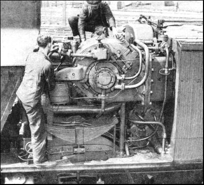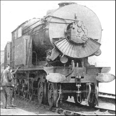 The Transandine engines are unusual. In early examples the front unit was arranged for combined rack and adhesion working, and had a small rack engine, while the rear unit was composed solely of a large rack engine. In later examples the supplementary rack engine was, however, abandoned, and the front unit was composed of only an adhesion engine, as it was found that this arrangement provided adequate power. The purpose of the auxiliary rack engine here was to provide a reserve of power to meet such contingencies as the formation of ice on the upper slopes of the line. The auxiliary engine has also been used, in the form of the booster, both in England and the United States, as a source of reserve power on ordinary adhesion locomotives. The former Great Northern Railway fitted a booster to one of its "Atlantic" locomotives. A noteworthy modern example in British practice is the London and North Eastern "Mikado" (2-8-2), designed for handling heavy mineral traffic between Peterborough and London, capable of hauling a hundred laden coal wagons, and ranking next to the same company's Garratts as the most powerful locomotive class in the British Isles. These locomotives, which were the first in England to have the 2-8-2 wheel arrangement, have three cylinders 20 in. in diameter by 26 in. stroke ; the coupled wheels have a diameter of 5 ft. 2 in. and the total tractive effort, when the booster is in operation, is 47,000 lb. The booster engine consists of a small power unit with two 10-in. by 12-in. cylinders, working on the trailing wheels, and with a tractive effort of 8,500 lb. Its object is to provide additional tractive effort when starting and on gradients. Action is semi-automatic ; when the extra power is needed, the driver operates the booster latch, and the auxiliary mechanism then functions without further attention. Many locomotive types merit the epithet unconventional not on account of any peculiarity in their mechanism, but as the result of unusual external design. In this category must be included a feature at one time not uncommon in the United States, in the shape of a cab perched centrally on the top of the boiler, an arrangement adopted in order to give the driver a better look-out. It has been used on the New York Central for passenger engines, and on the Lehigh Valley for goods engines. Locomotives of this type had two cabs, a second cab being situated in the orthodox position at the rear for the use of the fireman. The Southern Pacific Railway to-day uses oil burning tender locomotives having the cab at the front end and the chimney at the rear. The crew have thus an excellent look-out. The "Decapod" tank engine was also of an unconventional design. It was built for the Great Eastern Railway in 1902 to show that the acceleration associated with electrical working could be obtained with steam. The "Decapod" was able to attain thirty miles an hour in thirty seconds from the dead start with a 300-ton train. Only one example was built. This locomotive had ten coupled wheels (0-10-0 arrangement), a working pressure of 200 lb., a laden weight of 80 tons, and a total heating surface of 3,052 sq. ft. It was the first English tank engine to have three cylinders, and was also the first to have ten coupled wheels. For various reasons, including excessive weight, the "Decapod" saw little service. In 1906 it was rebuilt as an eight-coupled goods tender engine. Our survey would be incomplete without a reference to the numerous types of locomotive designed for specialized conditions of service. Prominent among these are "fireless" locomotives, built for use on factory and dock railways, on lines serving mines and explosive works, and elsewhere when it is desired to minimize the risk of fire and explosion. The fireless locomotive is a steam engine requiring no fuel. It is charged with high pressure steam sufficient for several hours' working, and the steam leaves the boiler and actuates the cylinders in the usual manner. These locomotives can be distinguished by the absence of a chimney. Another specialized type is the crane locomotive, used for works purposes. This combines a locomotive with a crane, which forms an essential part of the design. A typical example, as used on the Great Western Railway, is an 0-6-4 tank, in which the crane is mounted at the rear, over the coal bunker, and, when not in use, is slung over and in line with the boiler. The crane itself can be swung through any desired arc.