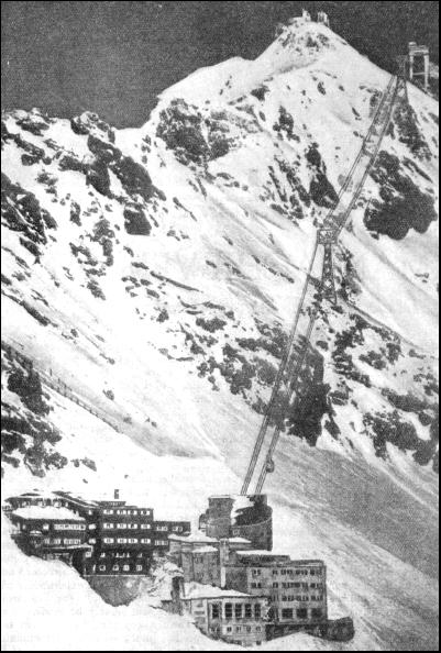 The Walchensee hydro-electric works, near Kochel, provide the energy for the Bavarian lines of the German State Railway. They are situated in the flanks of the mountain range called the Benediktenwand, and include two distinct power-houses. The first of these is at Obernach, beside the shores of the Walchensee. This is fed from an adit in the upper reaches of the River Isar, the fall of the water being 197 ft. In the Obernach house are situated turbogenerators developing an aggregate horse-power of 10,000. The water, after it has done its first spell of work, is discharged into the Walchensee, whence it falls again, this time 656 ft., through pipes to the much bigger power-house on the shores of another lake, the Kochelsee. The Kochelsee house contains four 12,000 horse-power simple turbines, and four spiral turbines each developing 24,000 h.p. The total power capacity of the Kochelsee alternators is 130,400 kilo-volt-amps. The Walchensee works are exceedingly impressive, and are situated in magnificent scenery. By way of comparison with these hydro-electric works, we may consider the Golpa-Zschwornewitz works in East Germany, where steam, and not water, provides the primary generative force. This contains ten steam turbine generators, with a total output of 160,000 kilowatts. Brown coal is the fuel. Other power-stations in this area are situated at Trattendorf and Lauta. The same standard rolling-stock is used in Eastern and Central Germany, on the electric lines, as in Bavaria. Central Germany saw the first main-line electrification in the country, between Bitterfeld and Dessau, which was carried out before the war. To-day the important main lines from Leipzig to Halle and to Magdeburg via Dessau are electrified throughout their length of 118 miles, the energy being obtained from the Buldenstein works, near Bitterfeld. The steam turbo-generators have an output of 16,500 kilowatts. Until comparatively recently the most modern mountain rack railway in the Bavarian Alps was that which ascends the Wendelstein, near the Austrian frontier at Kufstein, but this has been surpassed, since 1028, by the Zugspitze Railway, which ascends to the 9,725 ft. summit of Germany's highest mountain. On this line the Riggenbach type of rack is used, with electric traction, and the little blue and white train, with its connexions, brings the peak within four hours' journey of Munich. Sky-blue and white are the national colours of Bavaria. In Munich even the trams are sky-blue. The first part of the line, without the rack, runs up the valley of the Loisach to Grainau. At Kreuzeck an aerial railway ascends one of the eastern peaks of the Wetterstein group. After Grainau, the rack rail comes into use, and the line ascends sharply past the lovely Eibsee to Riffelsee. It then enters a tunnel and climbs right up through the interior of the mountain to Schnecfernerhaus, the terminus of the rack line. The last section of the line, ascending roughly a thousand feet, is accomplished by means of an aerial railway, with the car hanging from wire ropes. The view from the summit is one of the most superb in Europe. Another aerial railway swings down the southern side of the mountain into Austria. This dates from 1926-7. After all these details relating to electrical enterprise in Germany, it might be thought that some other methods of traction have remained undeveloped. This is anything but true. Recently the firms of Henschel and Borsig have been making careful experiments in the construction of high speed steam locomotives, with streamlined exteriors. When the doors giving access to the working parts are closed, the locomotive has a perfectly smooth exterior, resembling that of the Diesel-electric "Flying Hamburger." Henschel and Son are sponsoring a somewhat lighter type of steam locomotive, suited for work with short trains performing work similar to that of the "Flying Hamburger." This design incorporates a concave "stern" to the engine, in which the "nose" of the leading coach fits like a hand in a glove. Yet another design places the driver's cab at the front of the engine, the boiler of which is entirely closed in. There is, however, nothing new in the idea of placing the cab in front ; it was applied to a number of engines on the old Italian Southern Railway about 1900.