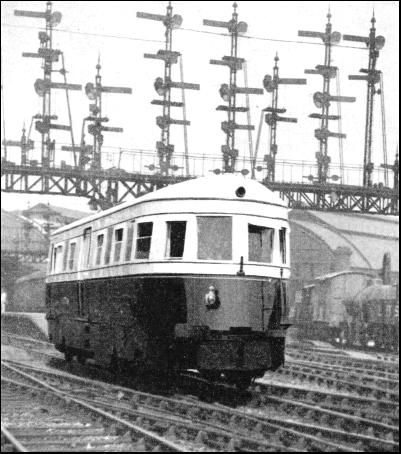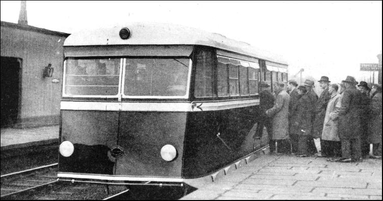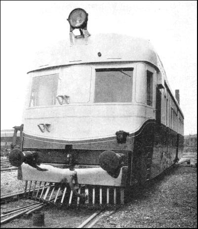 The disadvantages of the steam coach are thus rather numerous. It is considerably heavier, and therefore requires more horse-power to attain a certain speed. It also uses more fuel for a given power output than the vehicle having a petrol or Diesel engine. In addition, it has the drawback of larger dimensions for the same number of passengers carried. It also needs a relatively longer period of time in which to generate steam, and the steam pressure must be maintained whether the train is moving or stationary. On the other hand, the petrol or Diesel engine can be started from cold and run within a few minutes of starting up ; as soon as the water in the cylinder jackets is warm the vehicle is able to begin full-load work. In view of the various advantages of the internal-combustion engine it is not surprising that the railway authorities have recently given their attention to the possibilities of adapting road passenger vehicle engines and constructional methods to railway purposes. Their object is to improve rail coaches sufficiently to enable them to compete on level or even better terms with their road rivals. The railway engineer knows that if rail passenger coaches are made in a manner similar to those used on the road services, a large saving in the weight to be hauled is made possible. Further, by using the petrol or Diesel engine instead of the more cumbersome steam engine, a considerable economy in the fuel costs can also be effected. Another important advantage results from the operation of road vehicles on railways. The substitution of plain flanged wheels and smooth, straight railway tracks for road conditions results in a marked reduction in the driving effort required to haul these vehicles on the rails ; there are no road inequalities, rough surfaces, or steep hills to negotiate. Everything, therefore, appears to favour the use of railway coaches built on modern road vehicle lines and propelled by similar engines. In their first cost, and in running costs, they have the advantage of steam coaches ; and they should be able to compete successfully in running and maintenance costs with road passenger vehicles. Incidentally, also, the smaller Diesel rail coach is much more economical than almost any form of electrically propelled train, because of the high capital charges for track electrification.