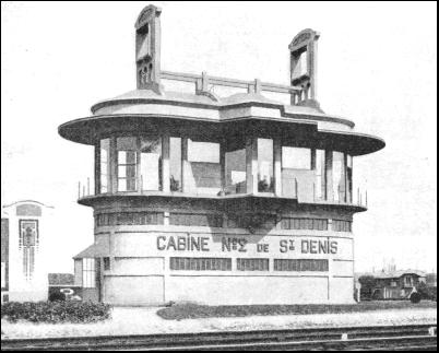 Long viaducts, too, have a charm of their own and generally display features of real architectural merit. Many of the finest bridges and viaducts in existence were built more than half a century before steel and concrete came into general use. The employment of reinforced concrete, however, does not imply that the bridge or building will present too severe an appearance in surroundings that call for artistic treatment Concrete structures are often faced with stone, coloured brickwork or even marble. It is not on stations and bridges alone, however, that the skill of the architect is expended. Many of the humbler, yet no less essential, railway structures are the subject of much thought and careful planning by the architect. Signal cabins, for example, have undergone revolutionary changes in recent years. Many fine types of signal box have been evolved in Britain and abroad. A striking example of the application of modern design to a signal cabin can be seen at St. Denis on the Northern Railway of France. This is a concrete structure with rounded ends, the whole of the upper story being of glass surmounted by an overhanging roof carrying framework for the reception of telegraph wires.